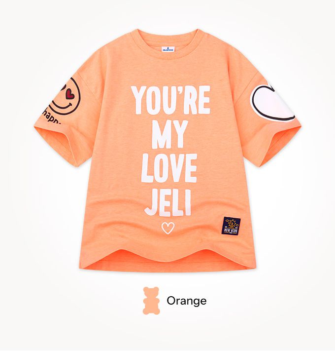 韓國 Jelispoon - Happy笑臉愛心短袖長版上衣-橘