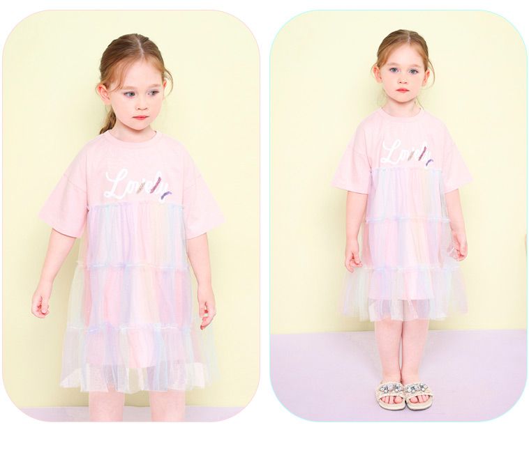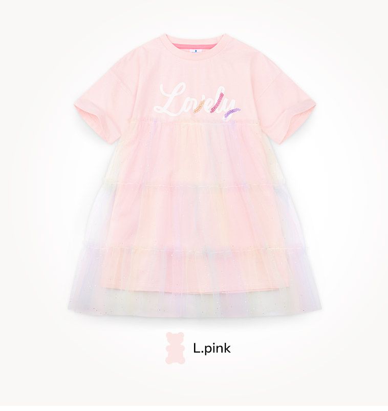 韓國 Jelispoon - Lovely夢幻亮片網紗拼接洋裝-淺粉