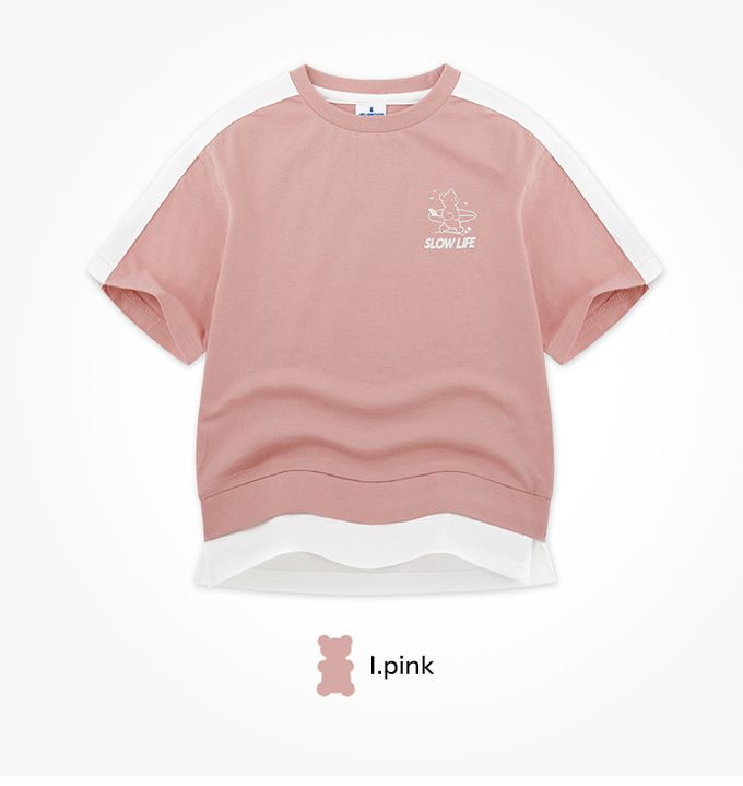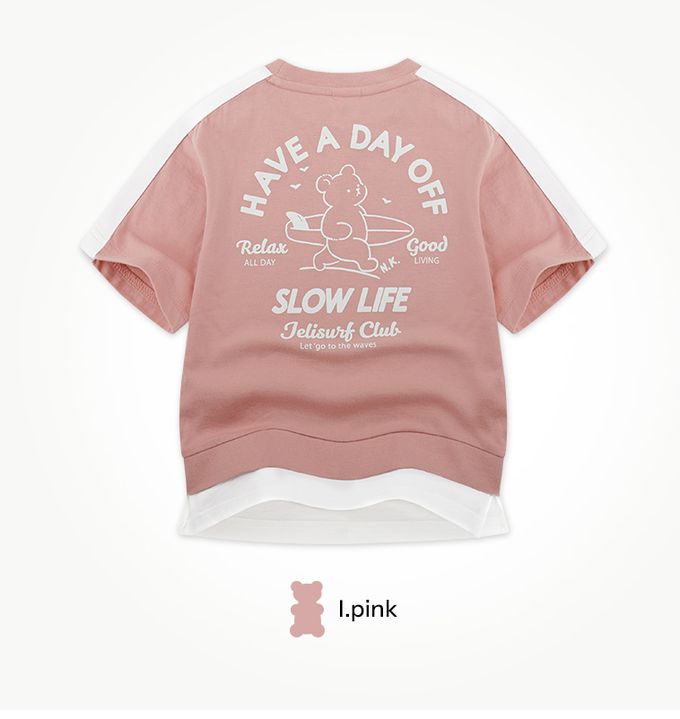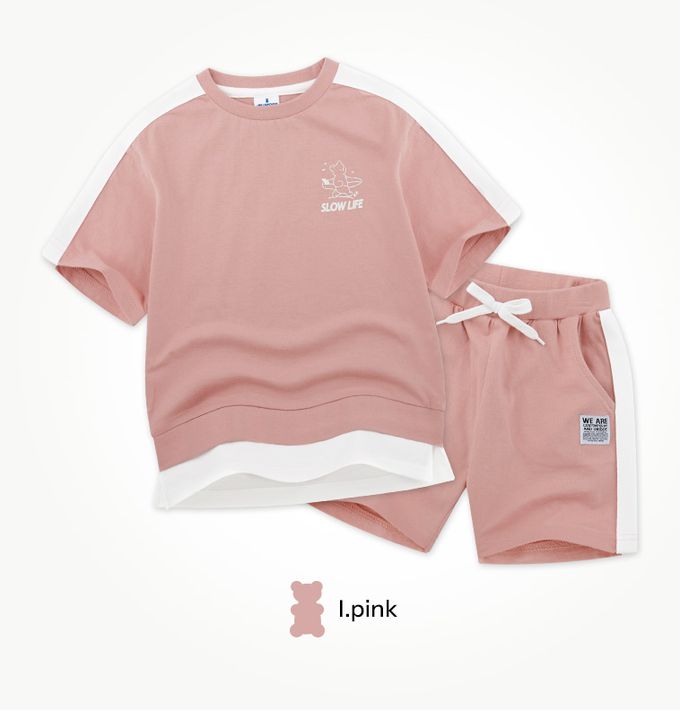韓國 Jelispoon - 衝浪小熊短袖短褲套裝-霧粉