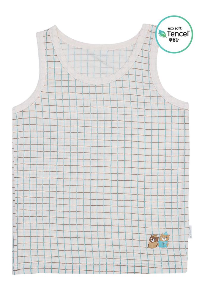 韓國 Ppippilong - 天絲纖維透氣背心內衣(男寶)-格紋讀書熊