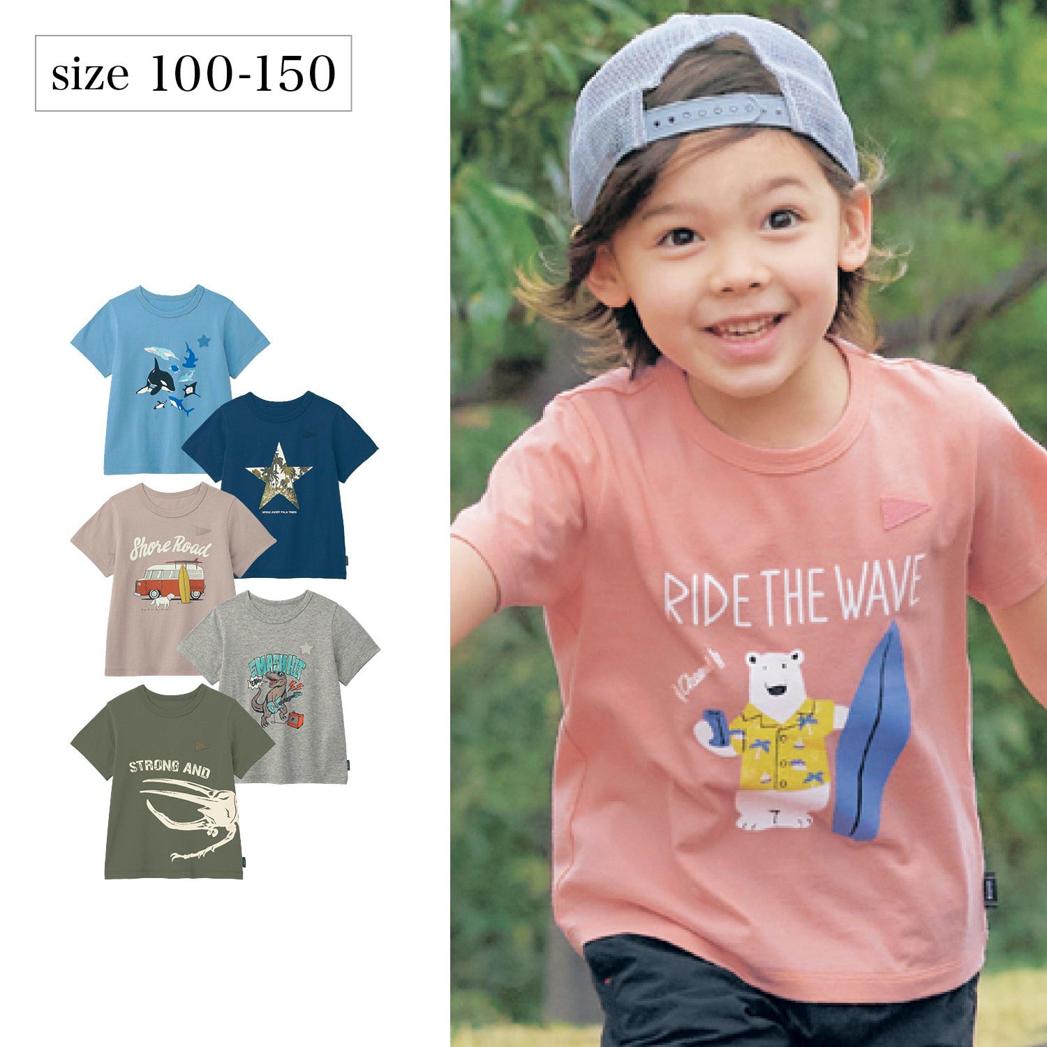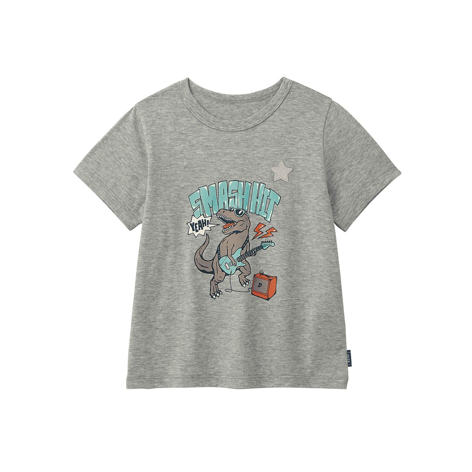 日本千趣會 - 天竺棉印花短袖上衣-恐龍熱唱-雜灰