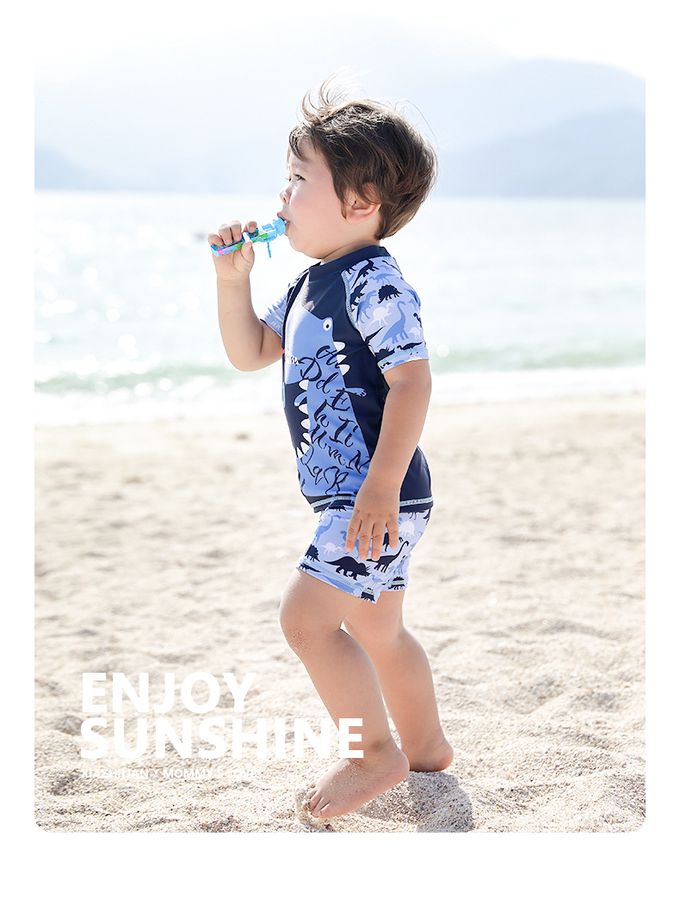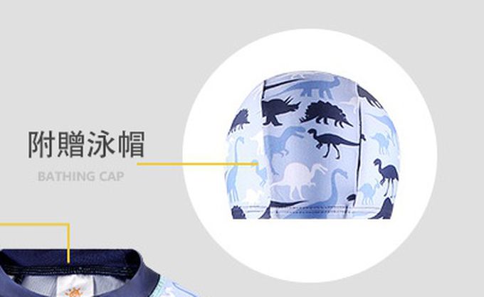 男寶防曬短袖泳裝套裝(附帽子)-超級恐龍-藍色