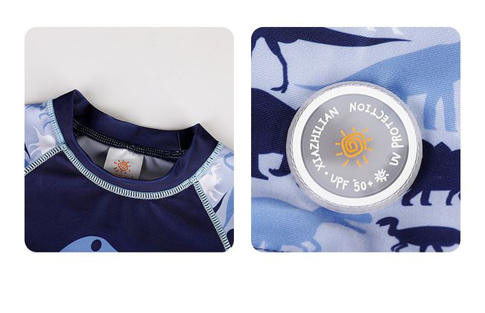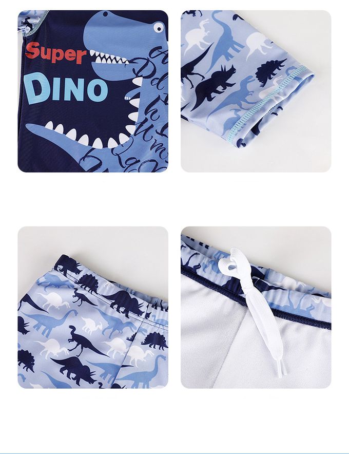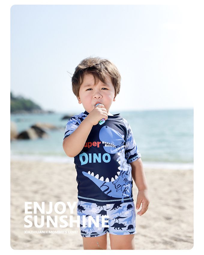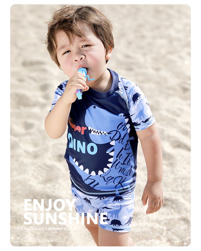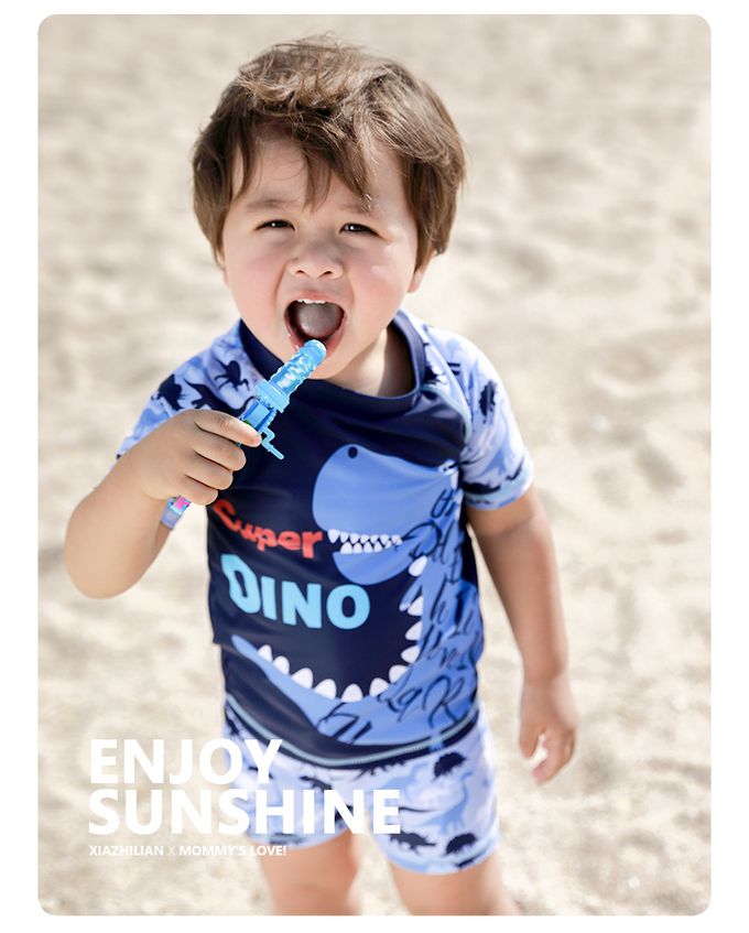 Xiazhilian - 男寶防曬短袖泳裝套裝(附帽子)-超級恐龍-藍色