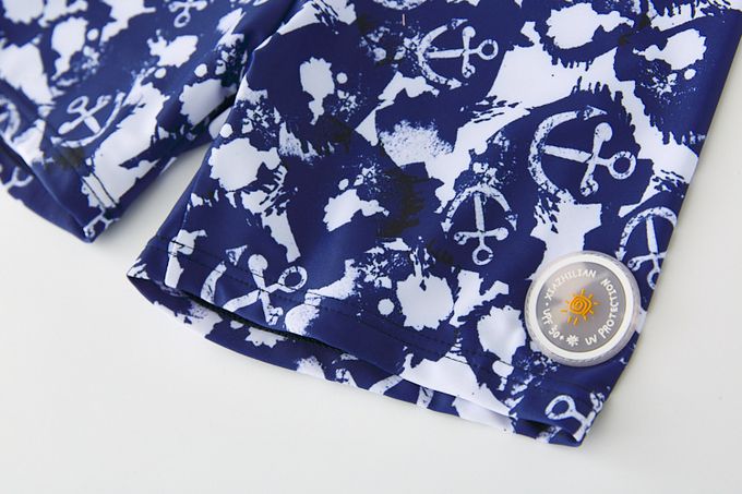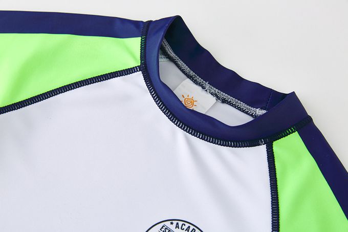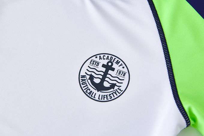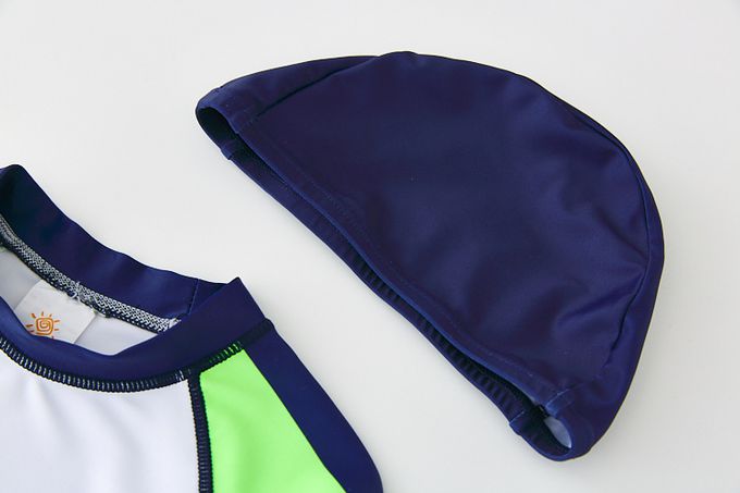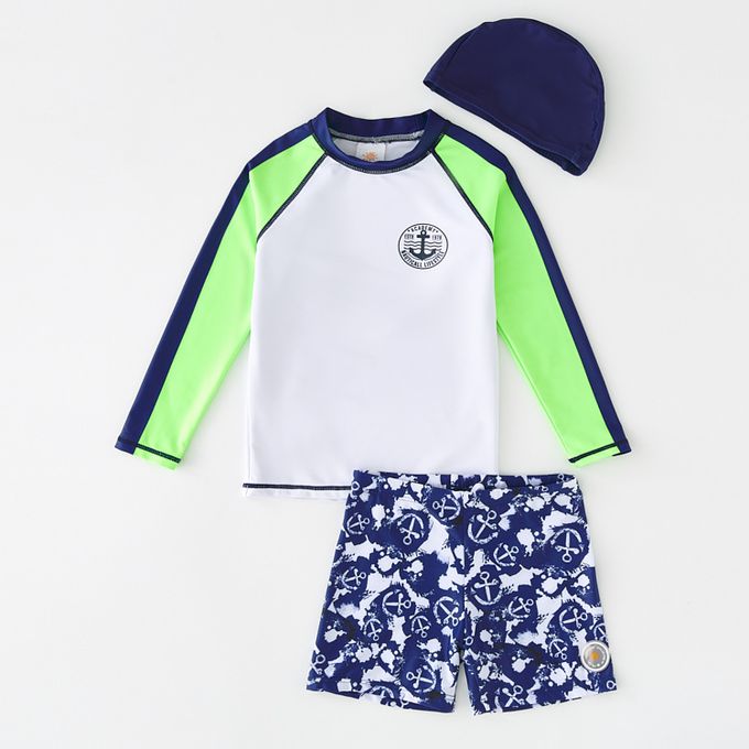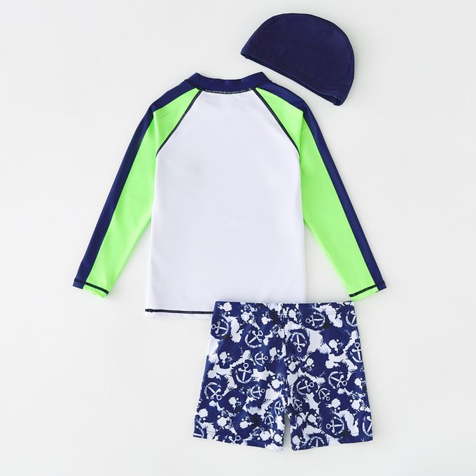 男寶防曬長袖泳裝套裝(附帽子)-海軍風-白+綠+藍