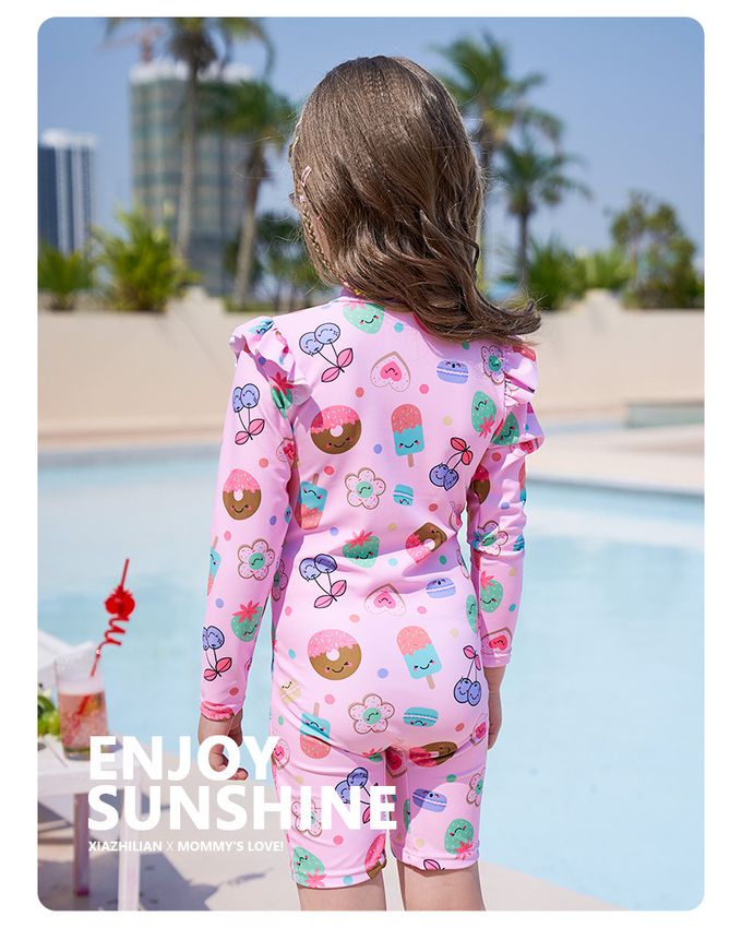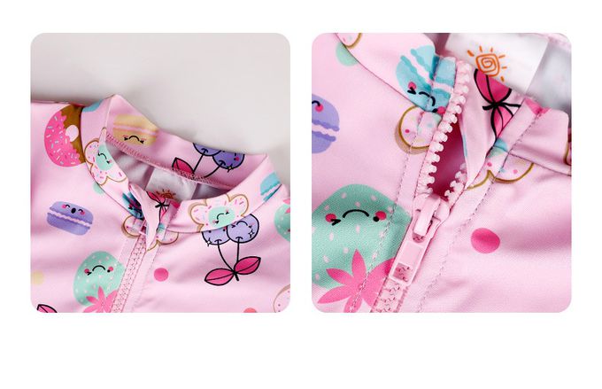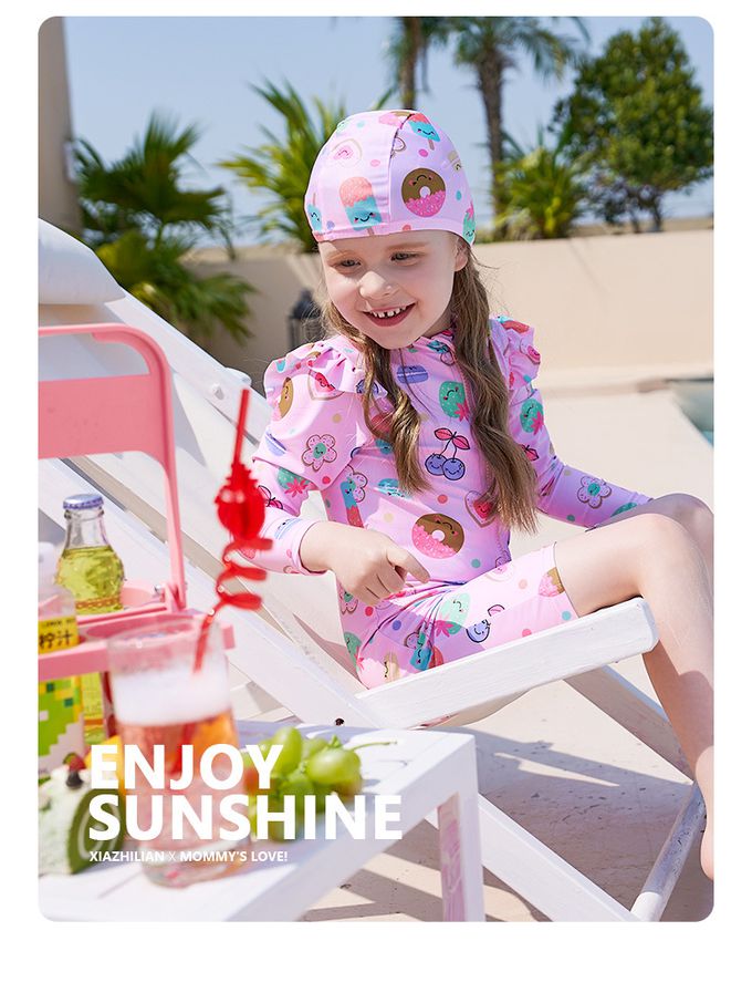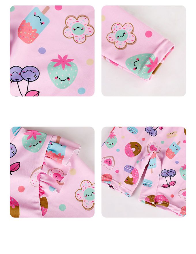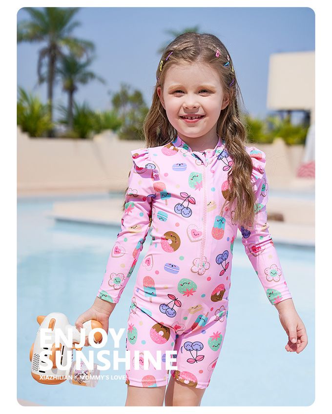 女寶防曬長袖連身泳裝(附帽子)-美味點心-粉色