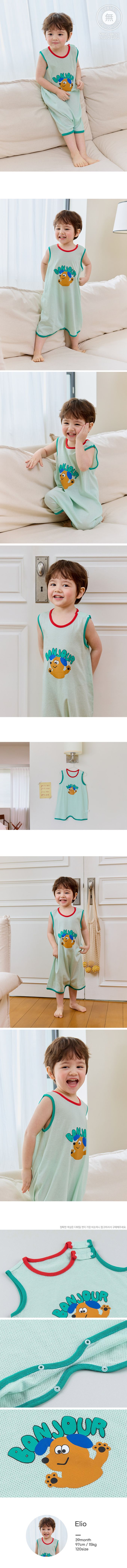 韓國 Cordi-i - 無螢光棉透氣洞洞連身防踢被-HELLO恐龍-卡其