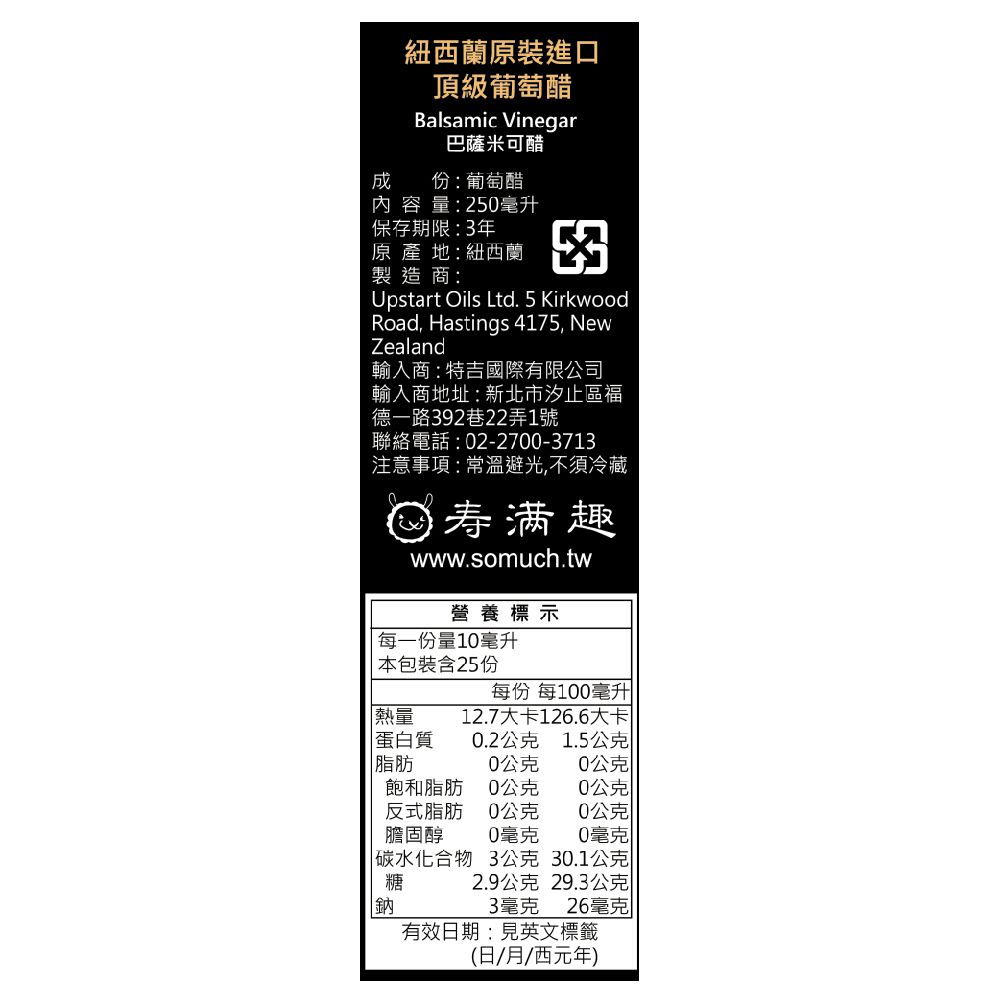 最後一款是巴薩米可醋,巴薩米可醋在西式料理很常被用到,尤其在料理節目中常常看到大廚最後淋一下,餐點就會變得很高級!巴薩米可醋是孕育自紐西蘭霍克灣以葡萄製成的;直接品嘗它是酸酸的滋味,帶有果香的氣息,是相當香醇的口感!