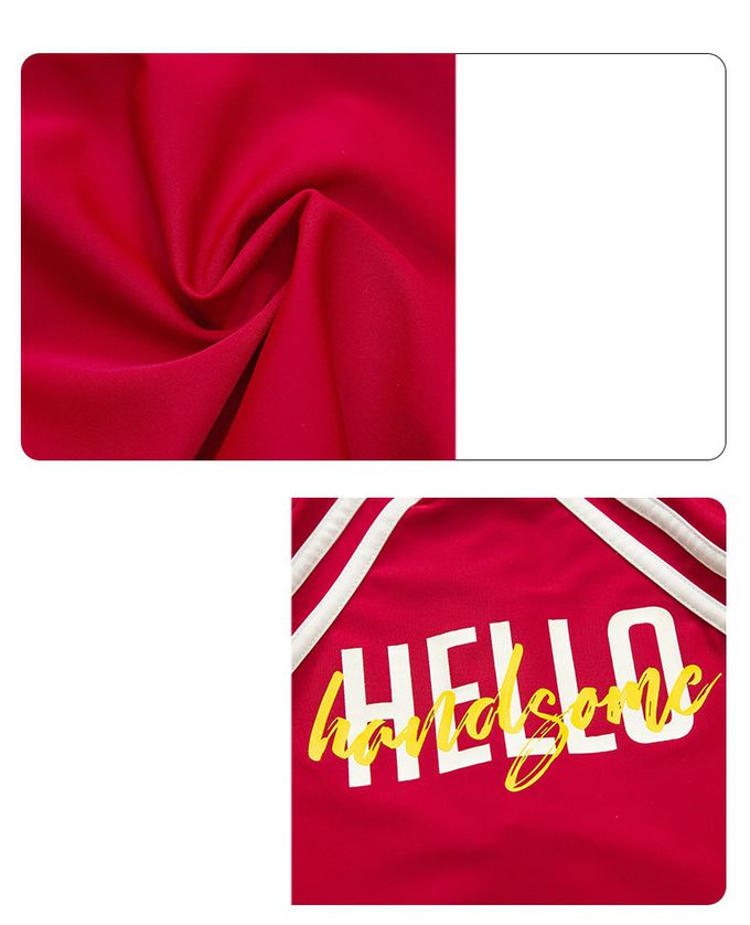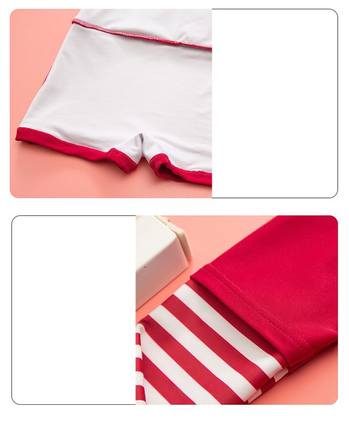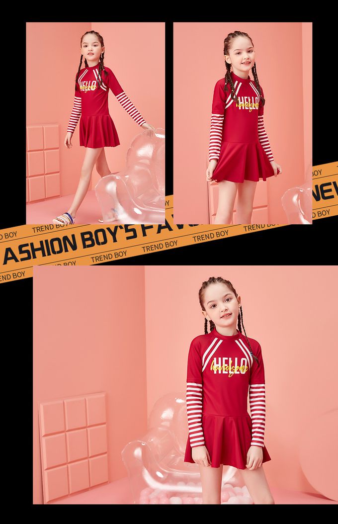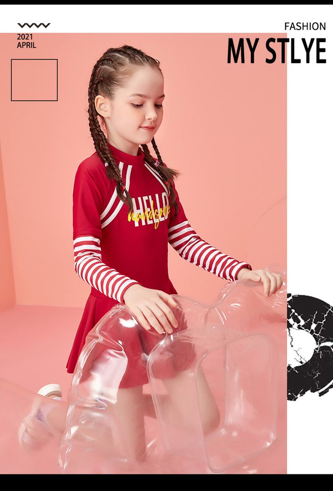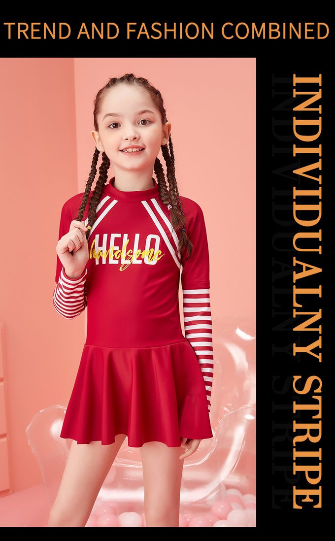 女寶運動風長袖連身泳衣-HELLO-紅色
