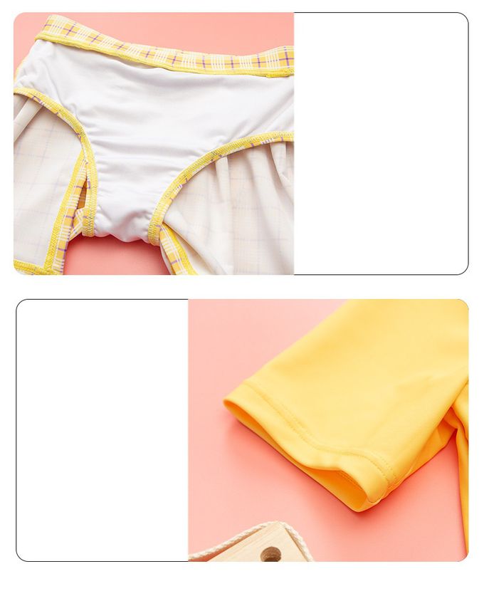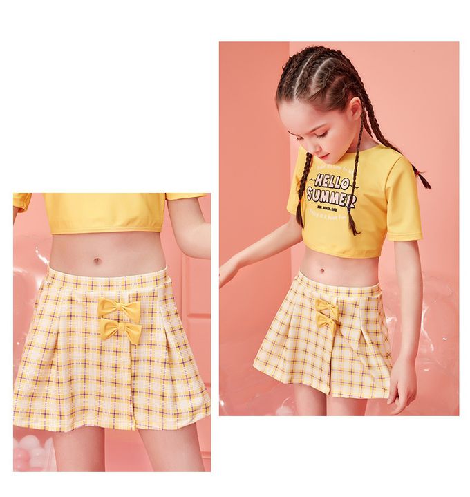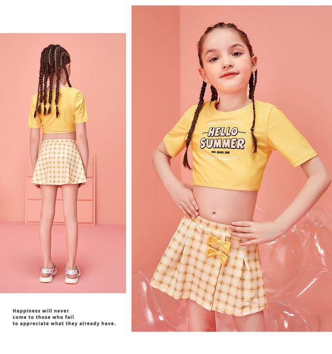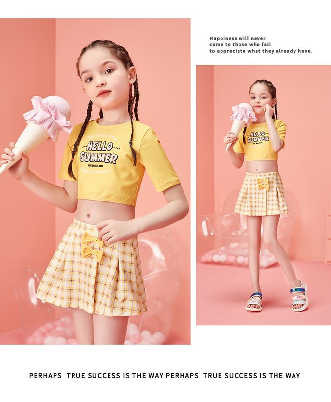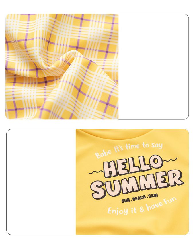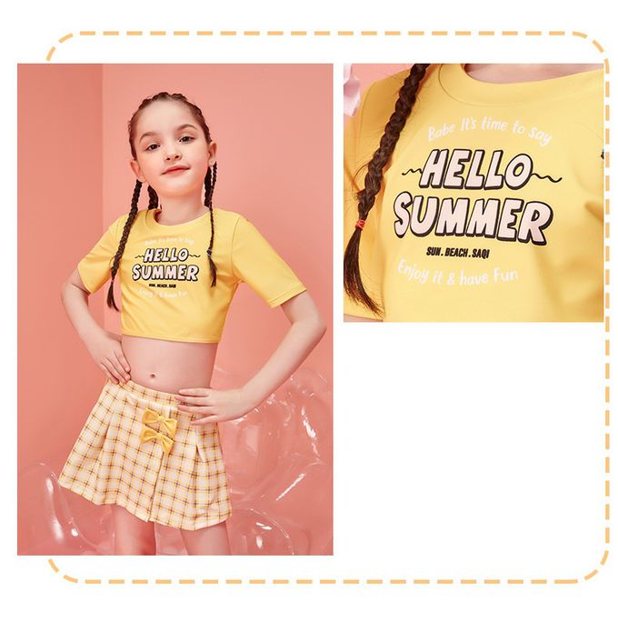 女寶甜美風短袖泳衣套裝-HELLO SUMMER-黃色