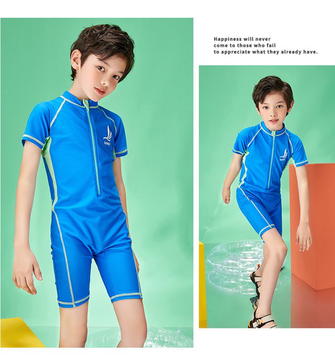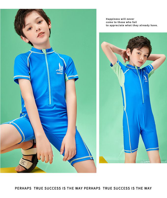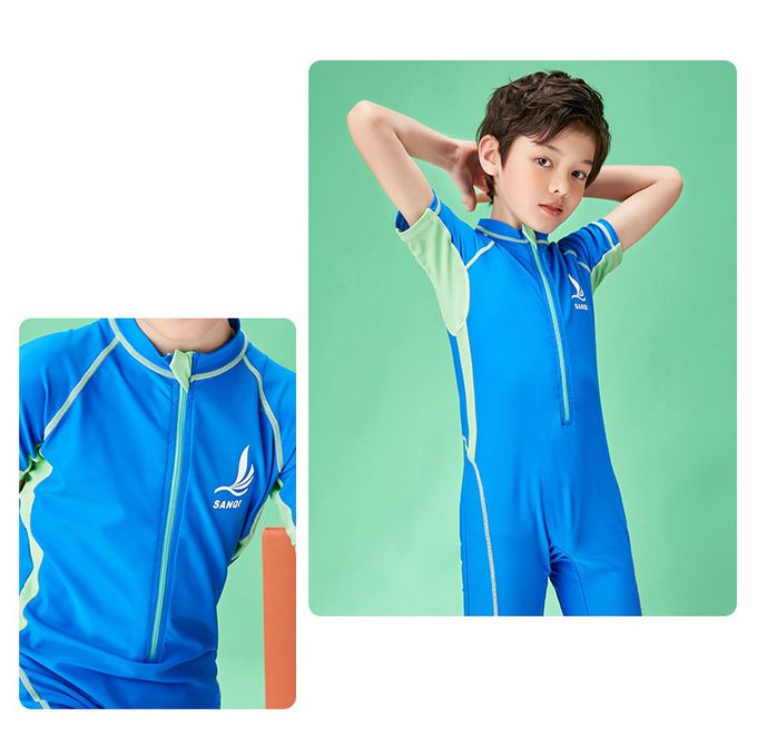 SANQI - 男寶運動風短袖連身泳衣-藍色