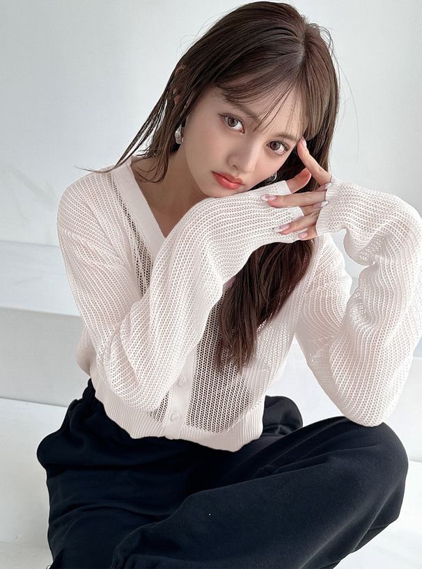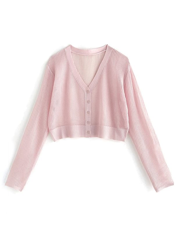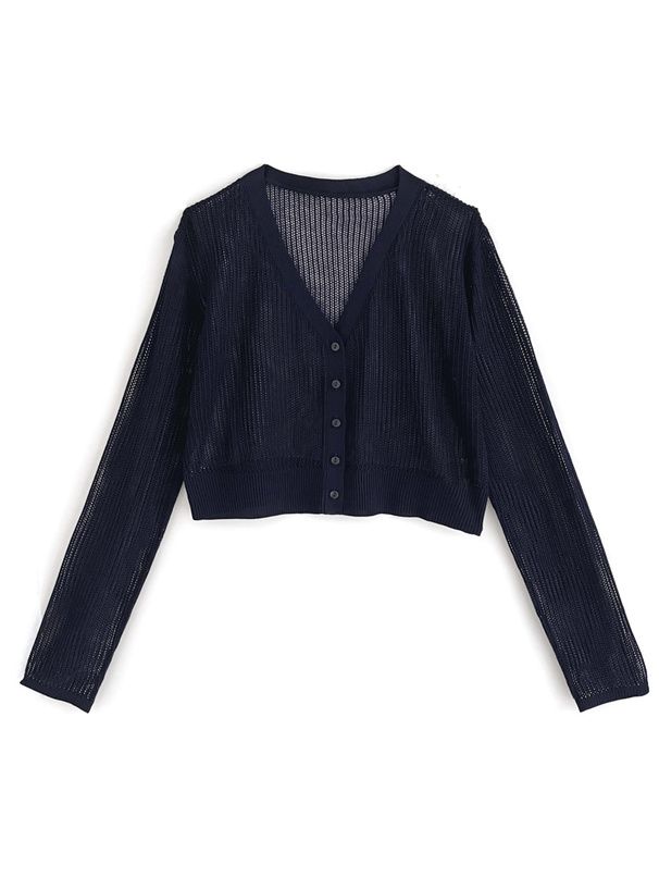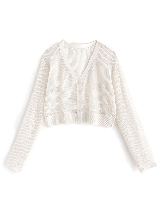 春日短版鏤空針織開襟衫