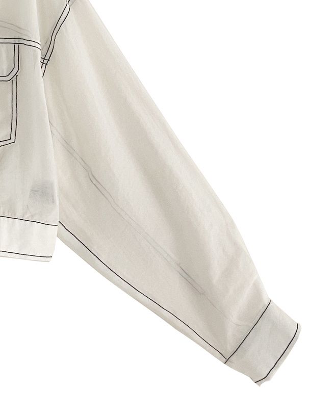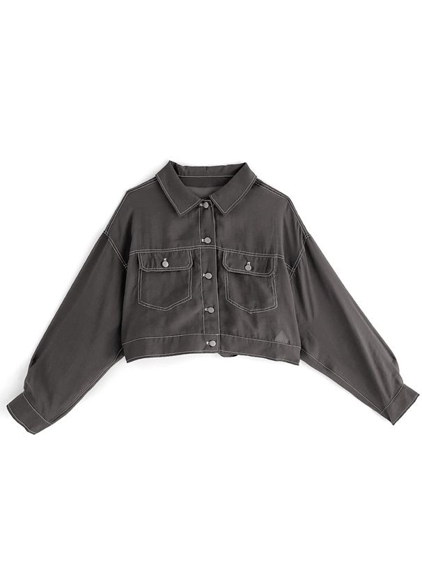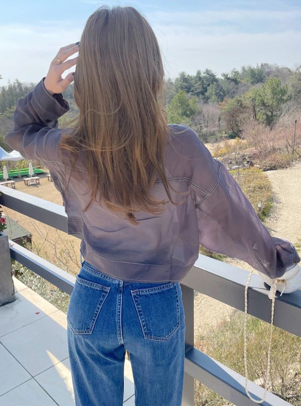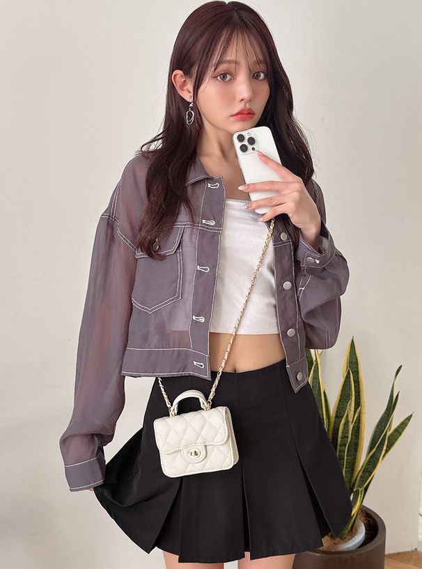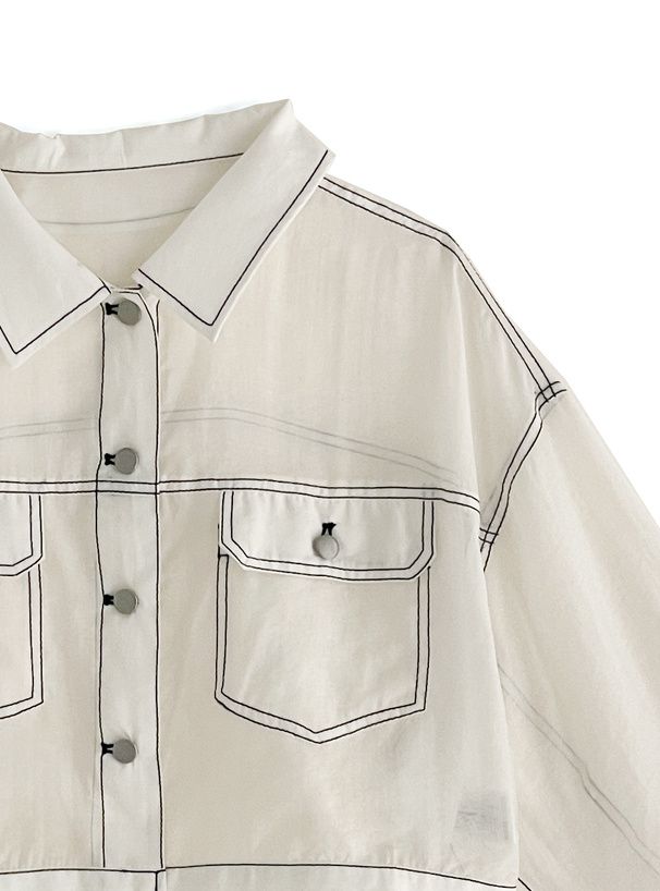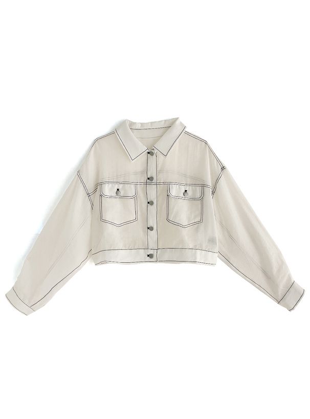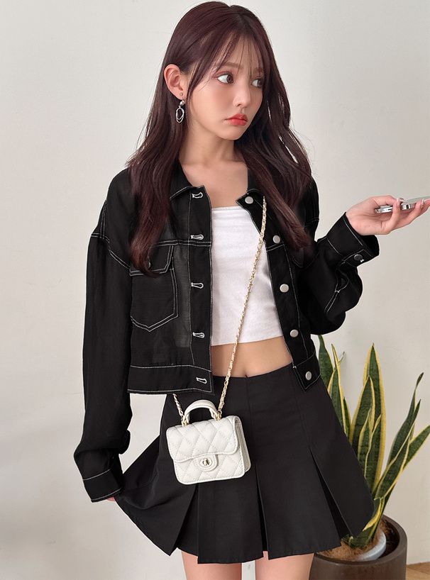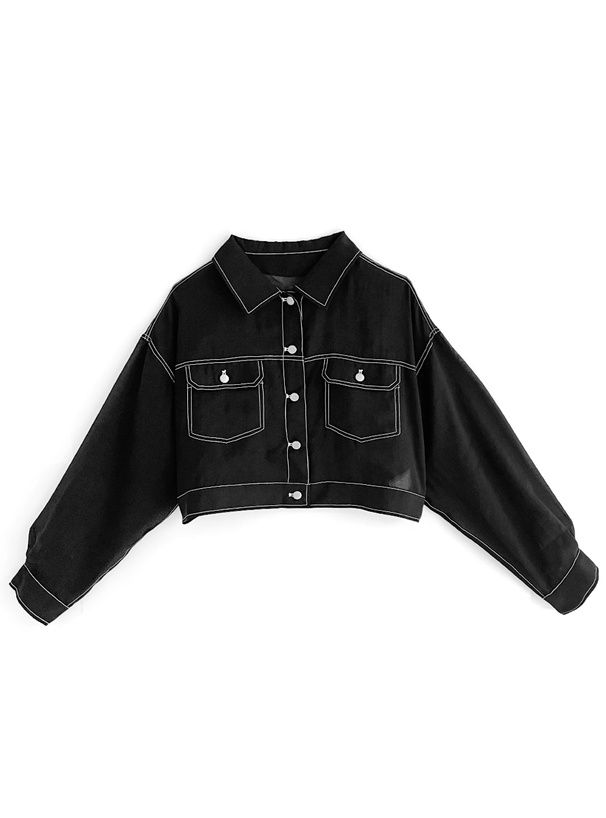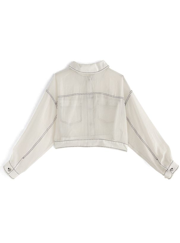 輕盈透膚短版薄外套-丹寧風縫線-黑 (F)