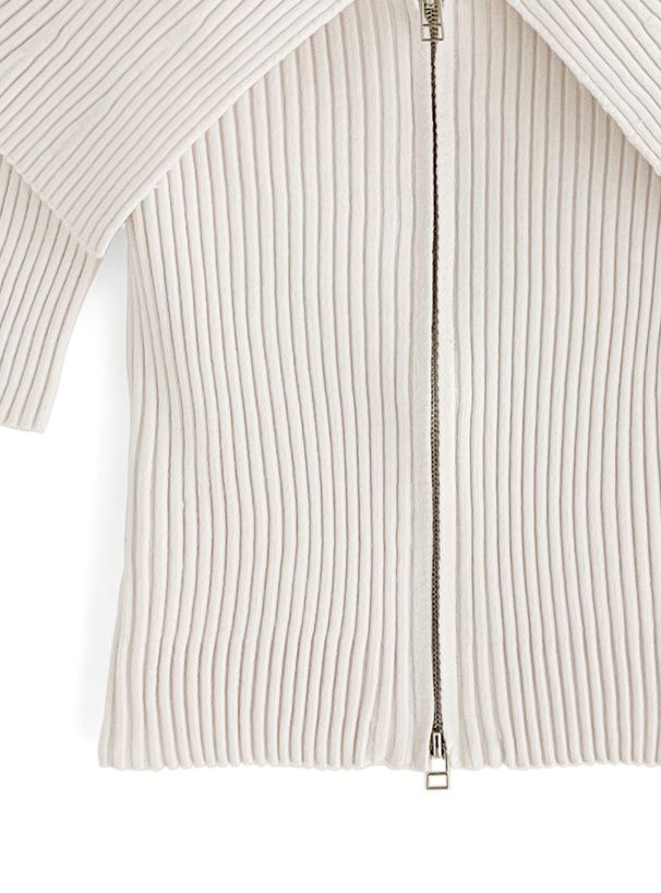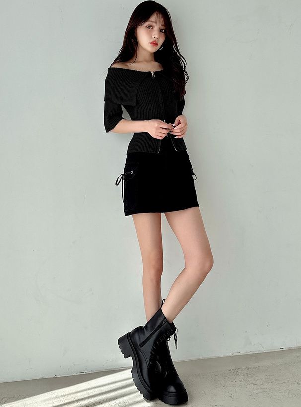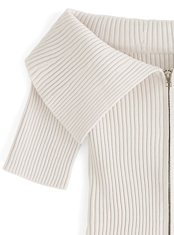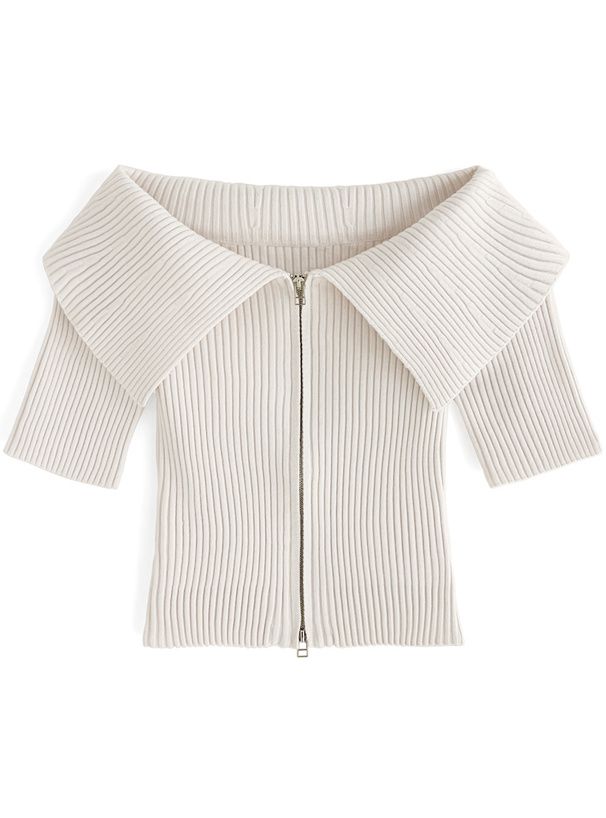 • 品名:露肩大翻領雙拉鍊短袖上衣