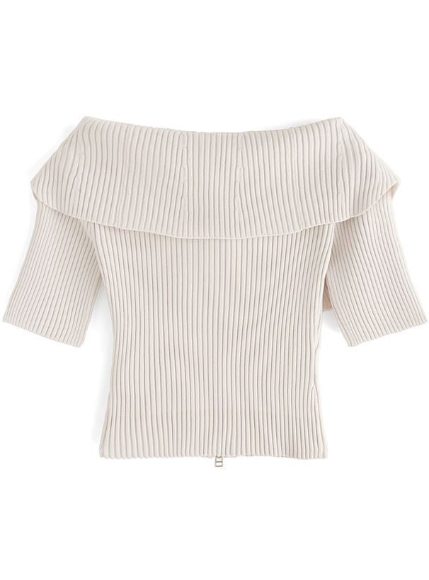 露肩大翻領雙拉鍊短袖上衣