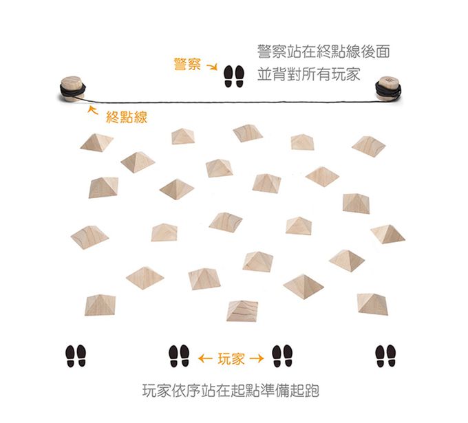 孩子藉由注意擔任警察玩家的指令與肢體動作