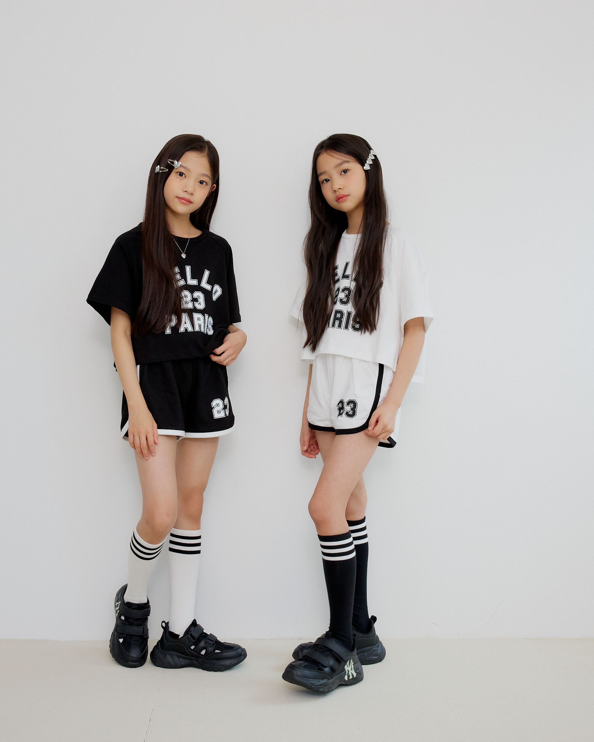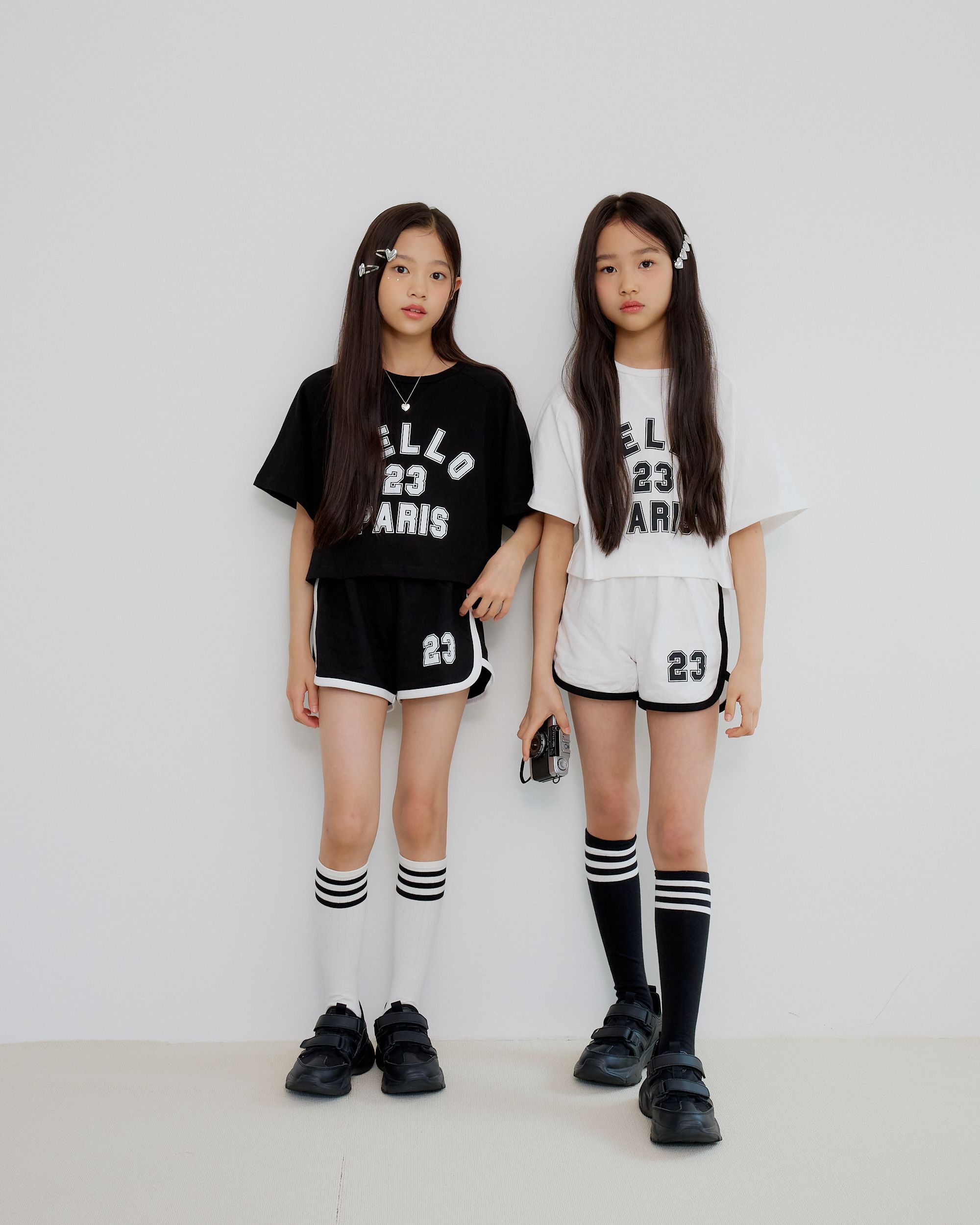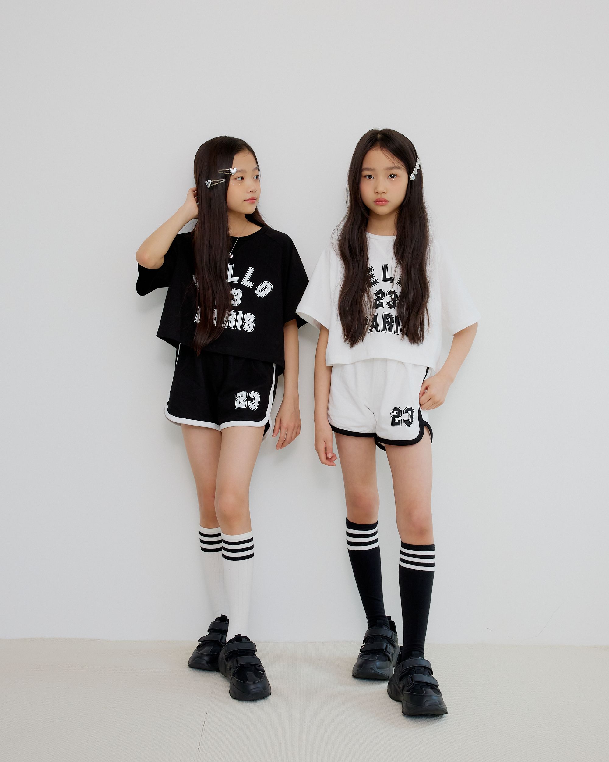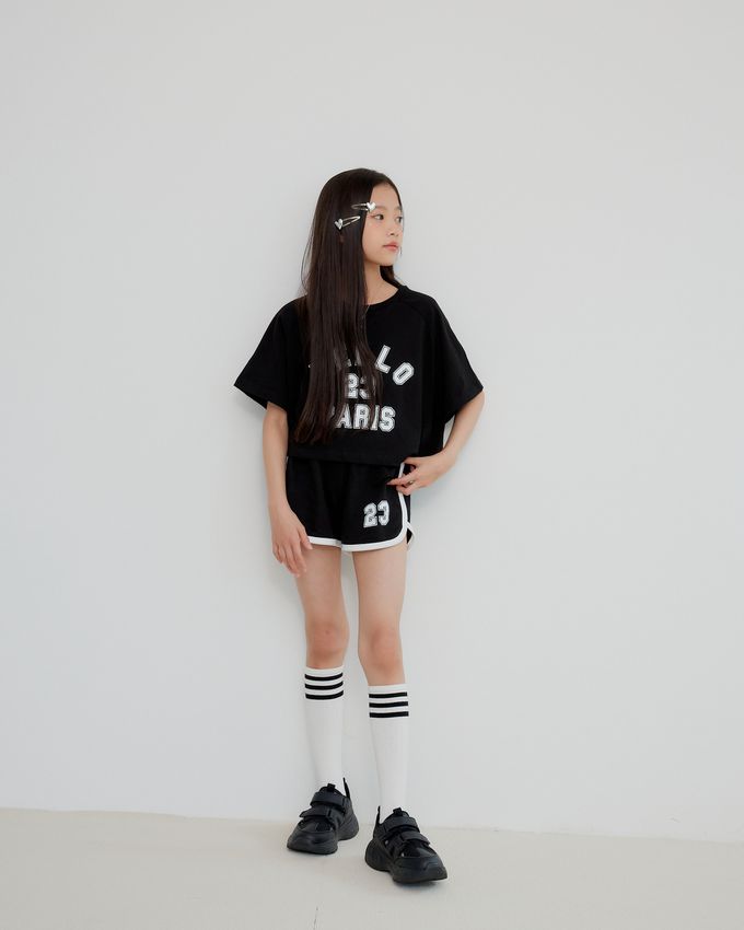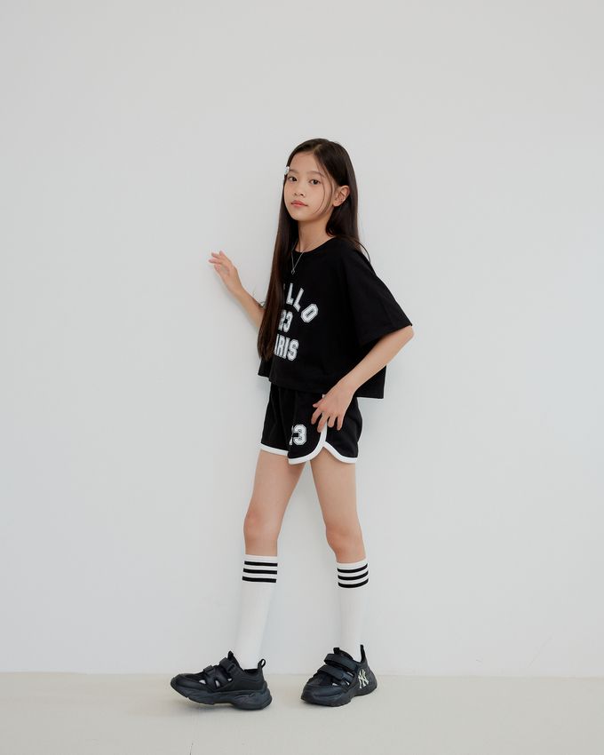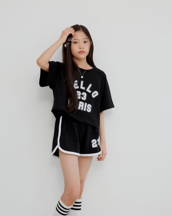 韓國 sm2 - HELLO運動風短袖短褲套裝-黑