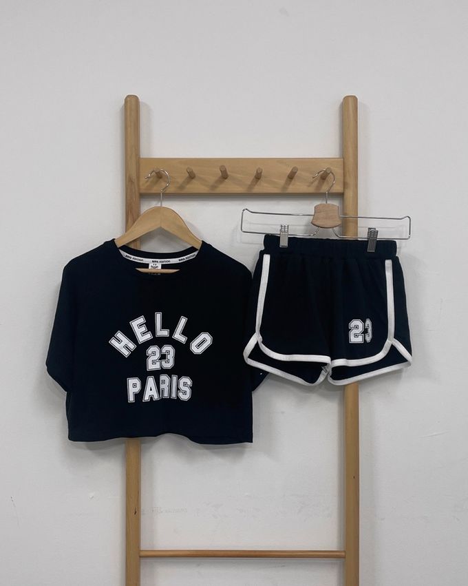 • 品名:HELLO運動風短袖短褲套裝