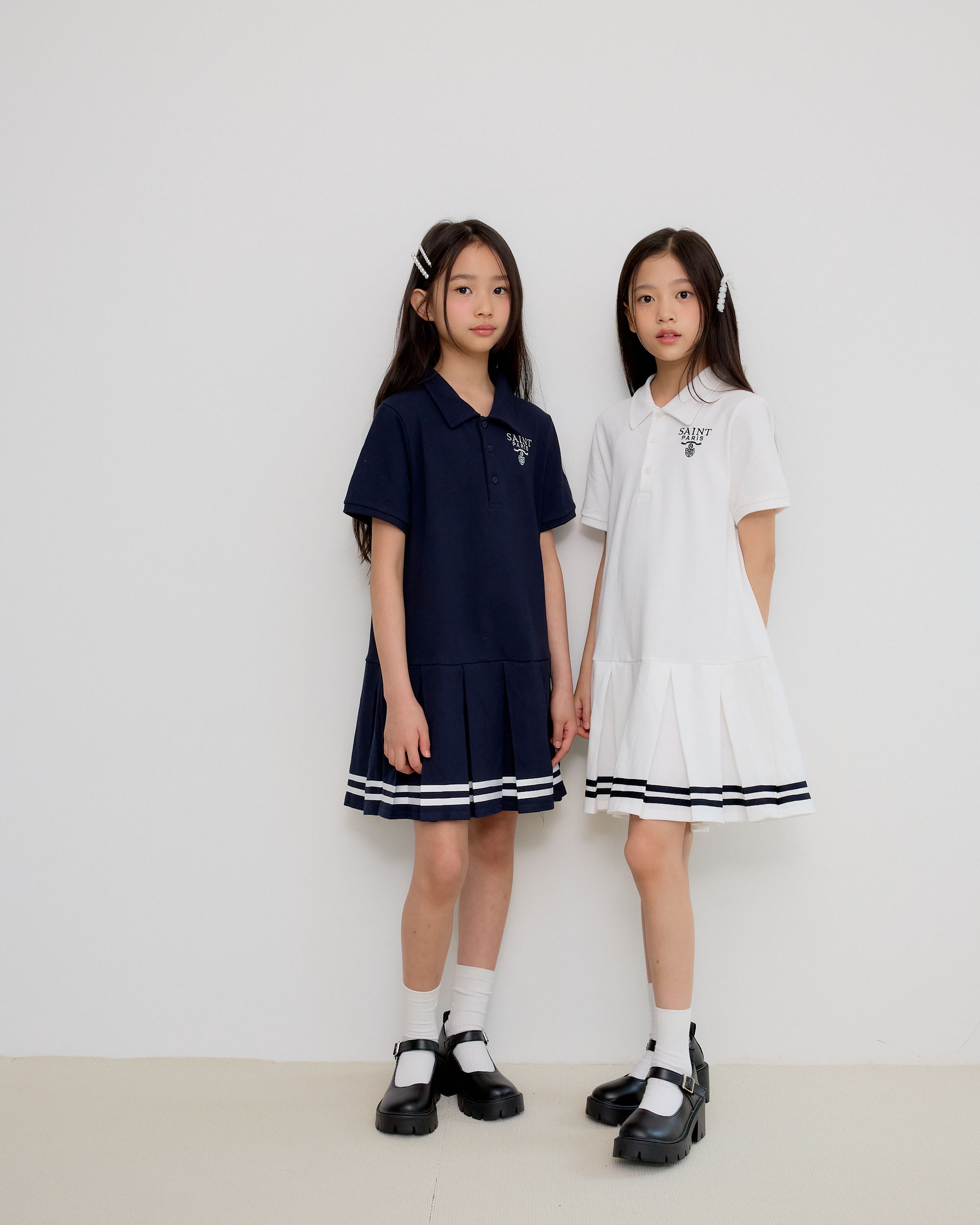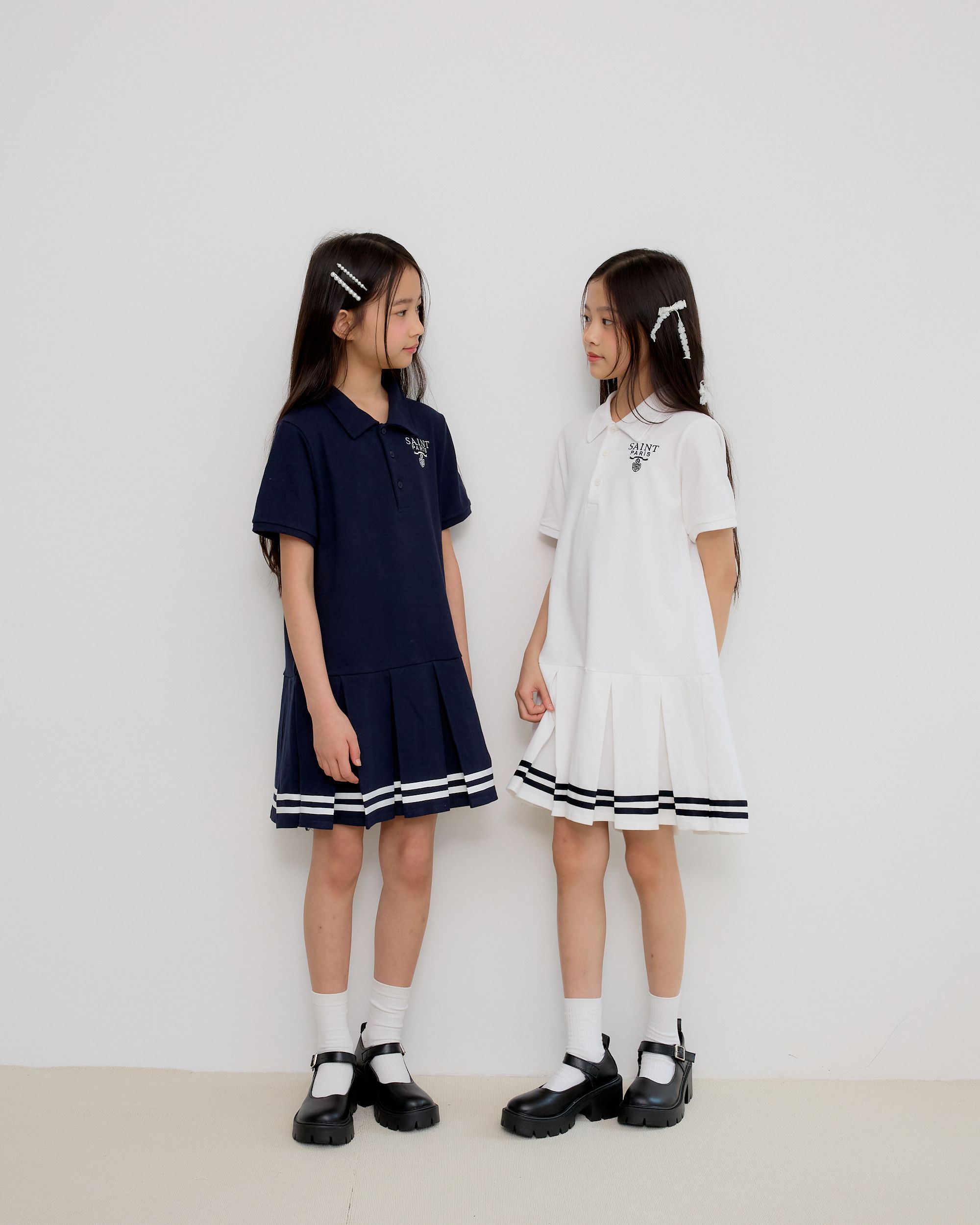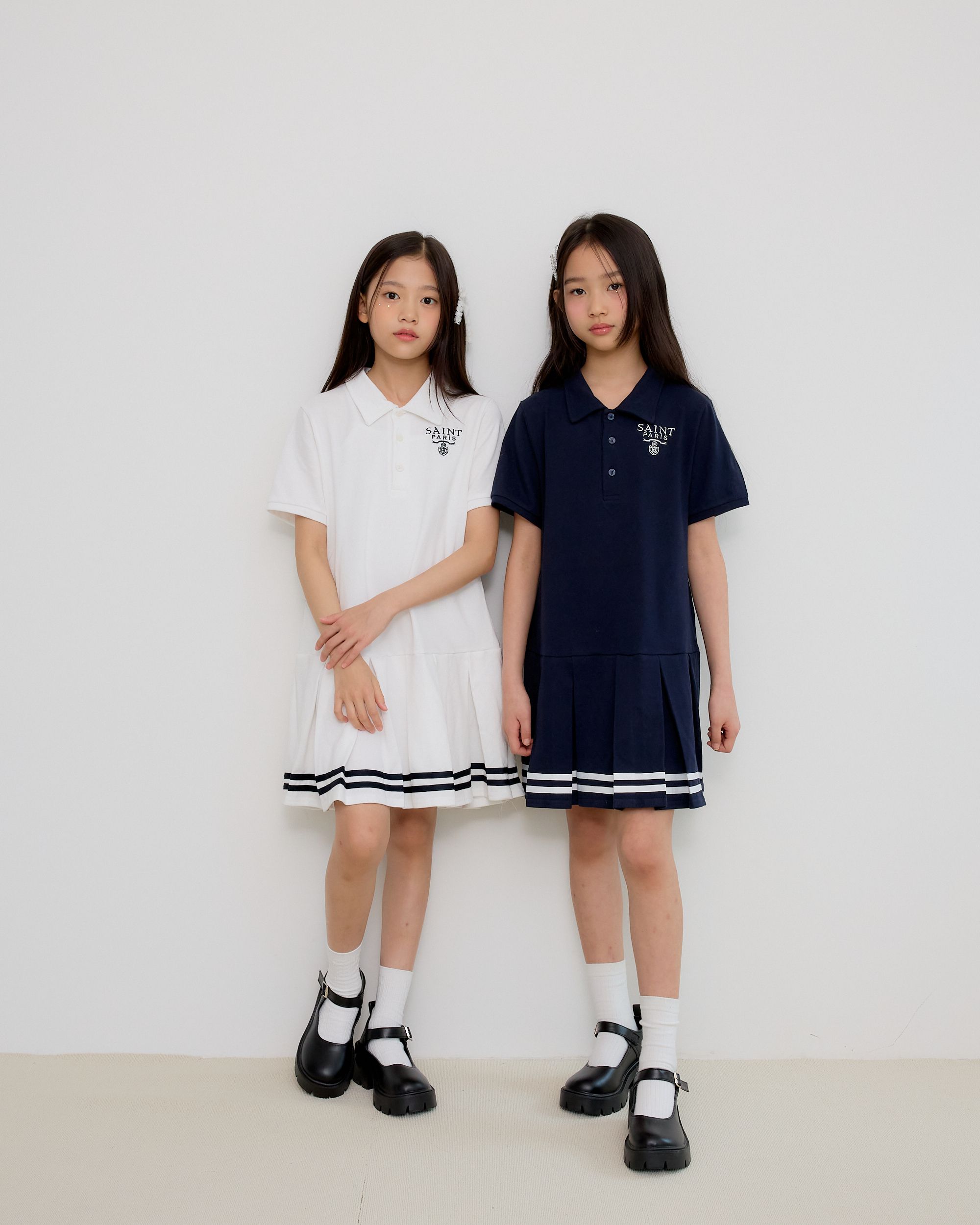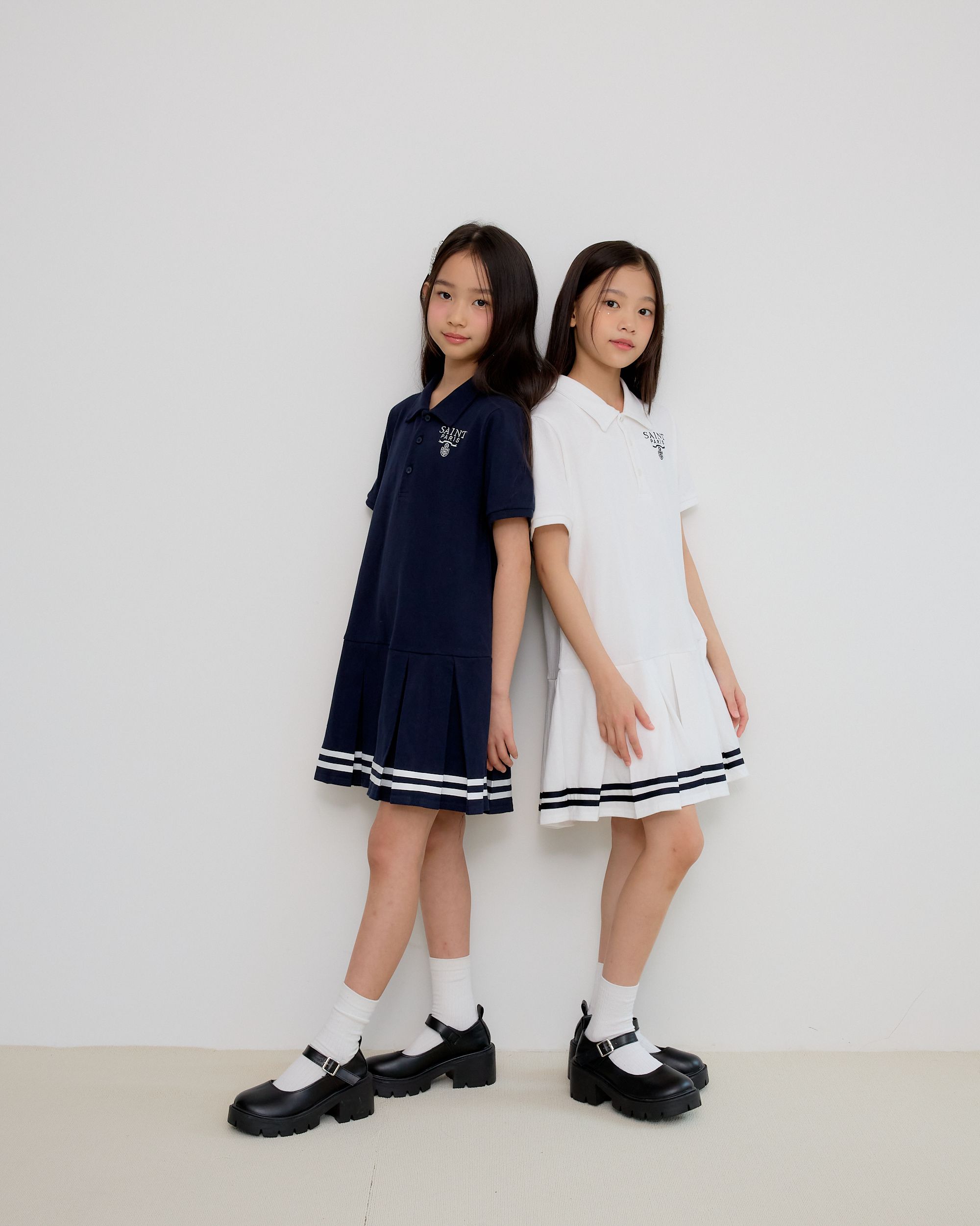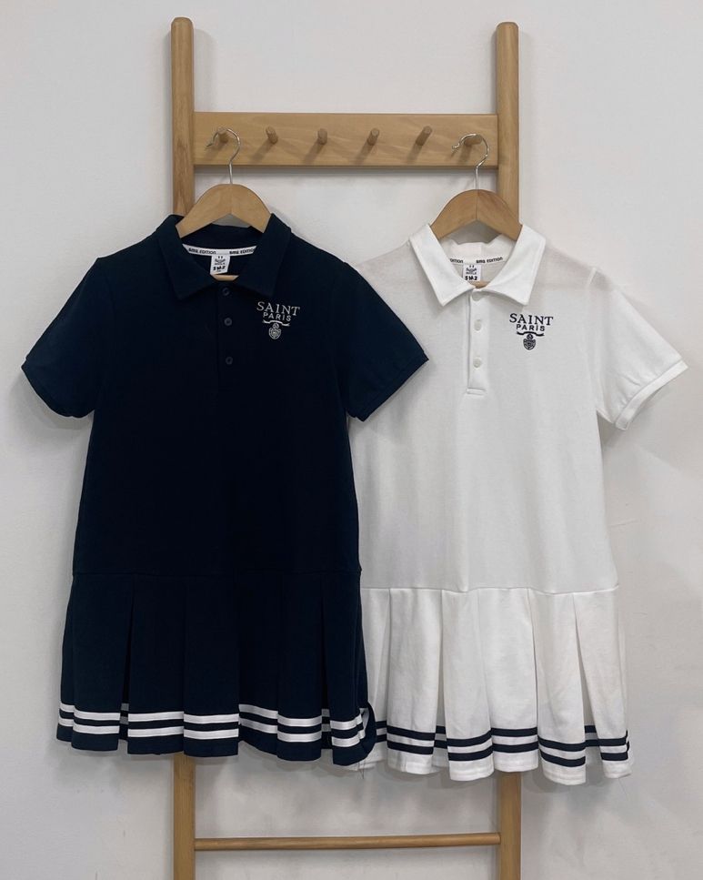 韓國 sm2 - 學院風拼接打褶裙連身洋裝-白