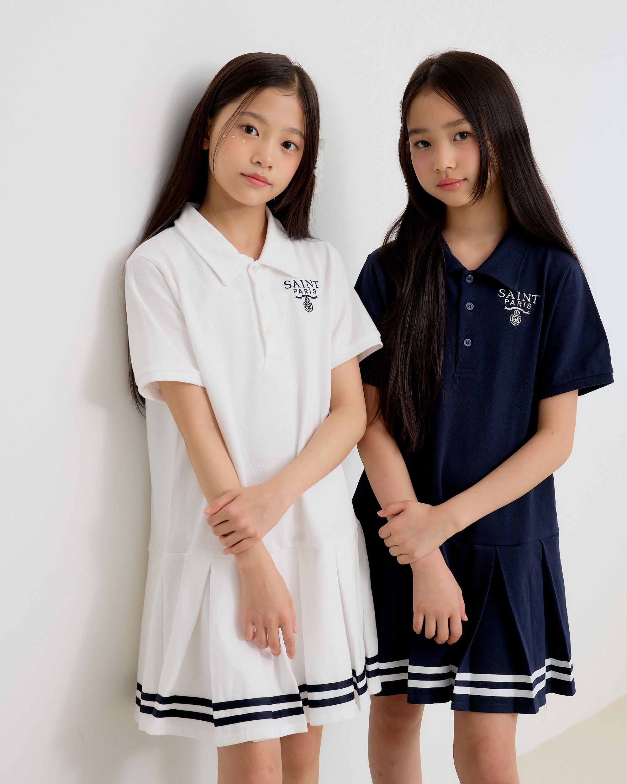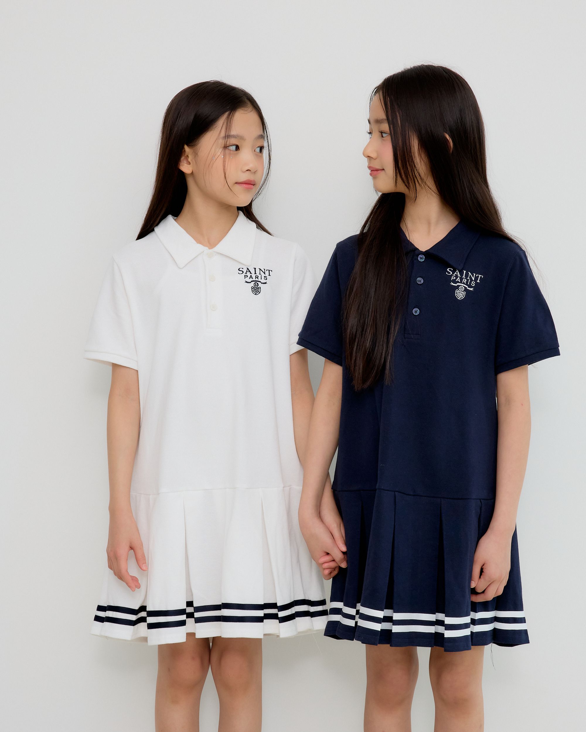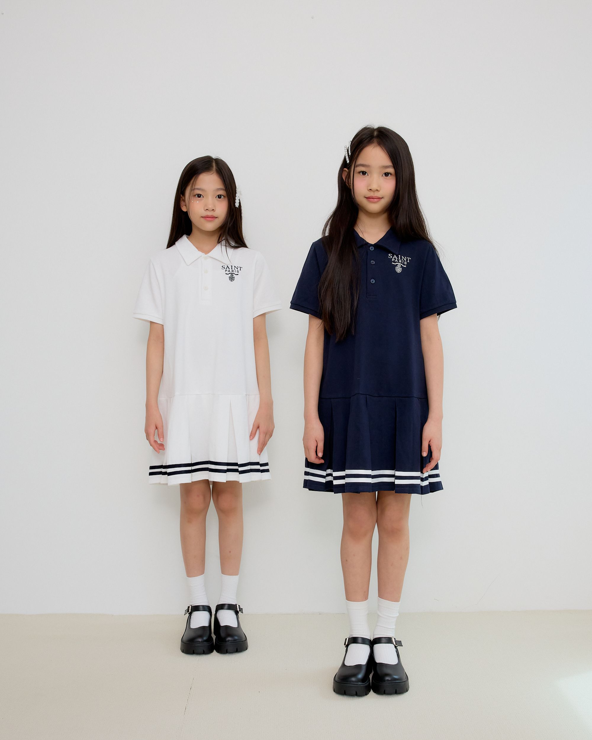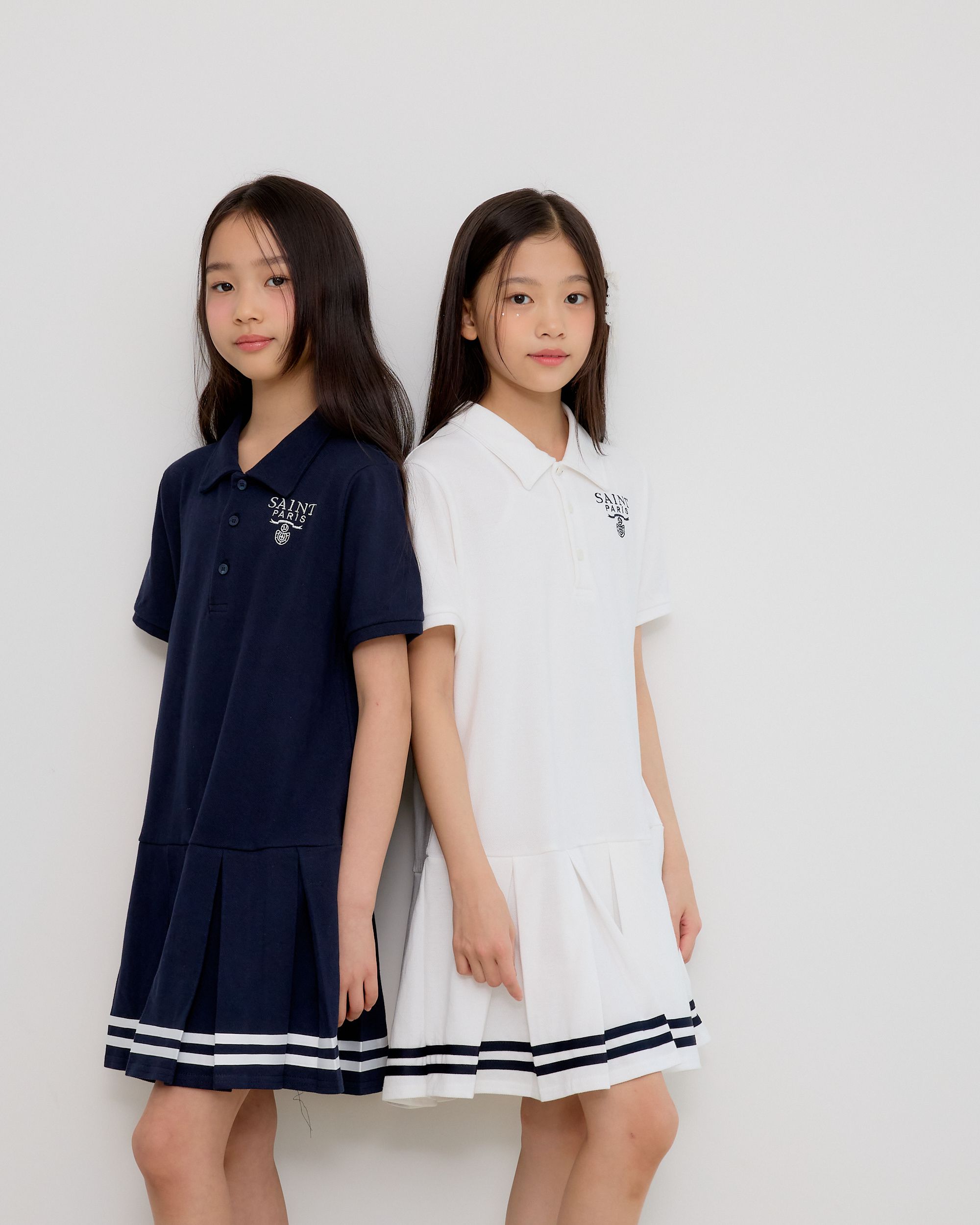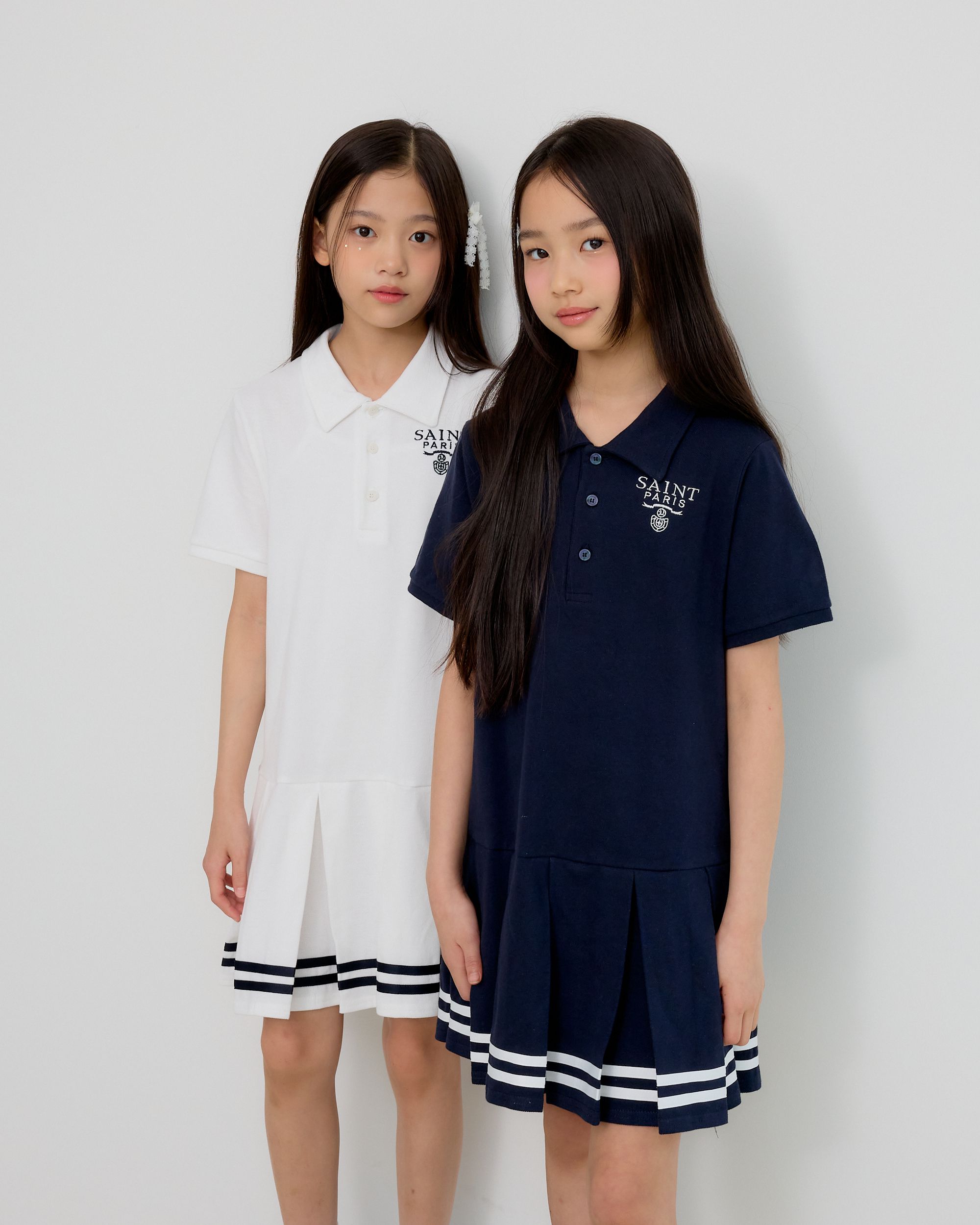 韓國 sm2 - 學院風拼接打褶裙連身洋裝-白