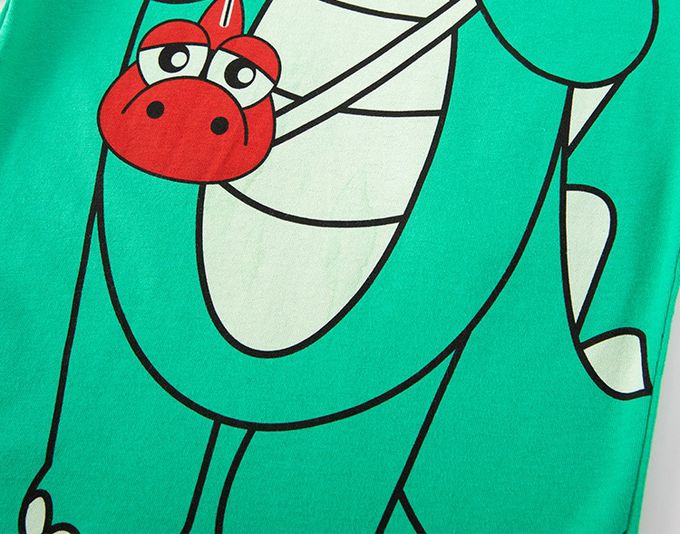BE TOP - 純棉立體短袖上衣-挑眉恐龍-綠色
