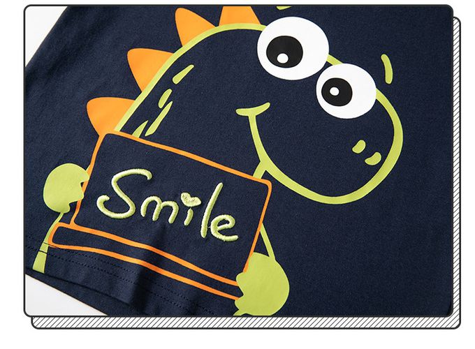 純棉短袖上衣-smile刺繡龍龍-深藍色