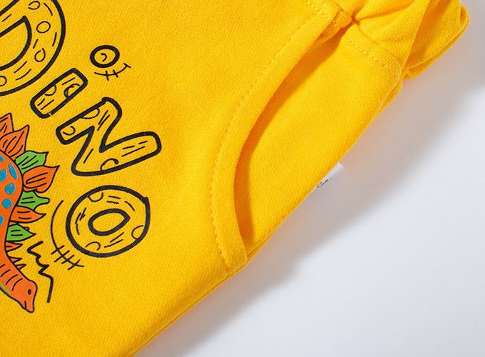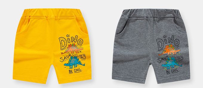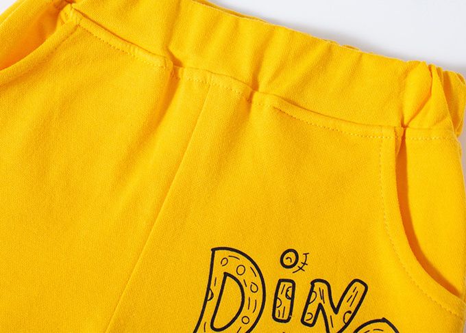 BE TOP - 純棉休閒短褲-偷看恐龍-黃+藍