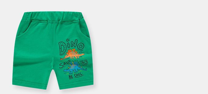 BE TOP - 純棉休閒短褲-咆哮呆呆龍-軍綠色