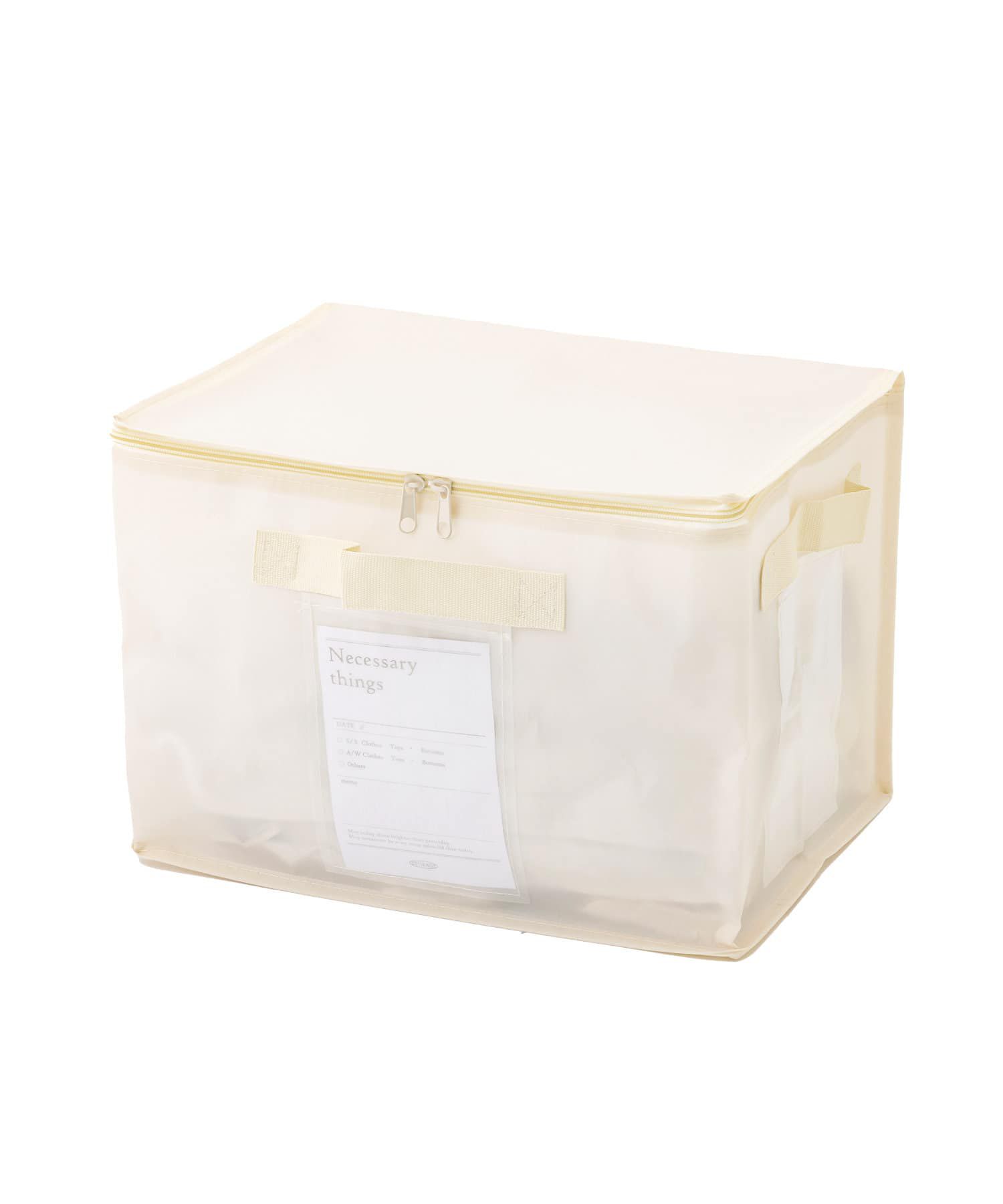 日本 3COINS - [日本主婦推薦] 半透明多功能衣物收納袋(橫向提把) 2入組-象牙米 (M(26x26x37cm))