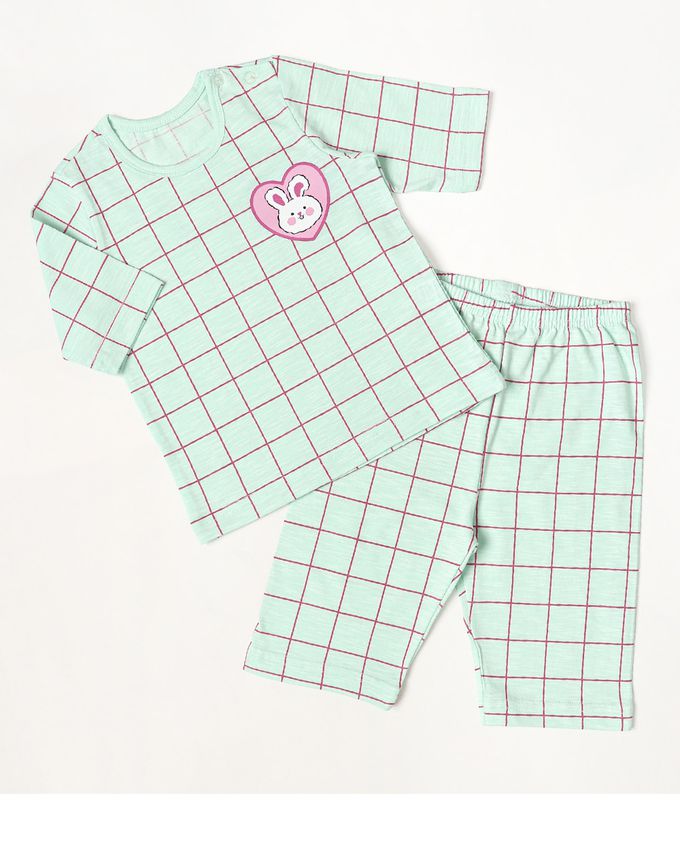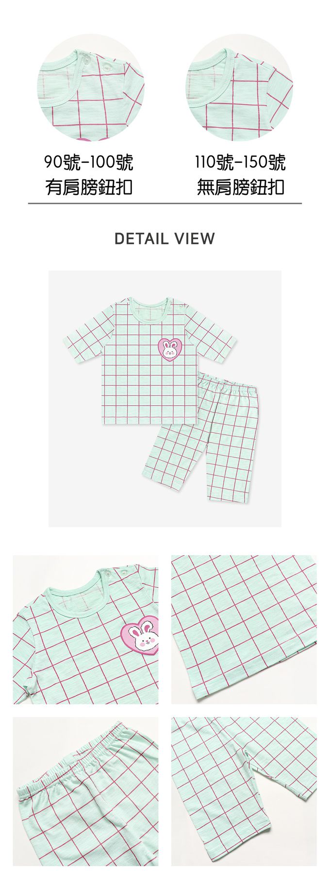 韓國 Mellisse - 韓製莫代爾透氣7分袖家居服-格紋兔子-湖水綠