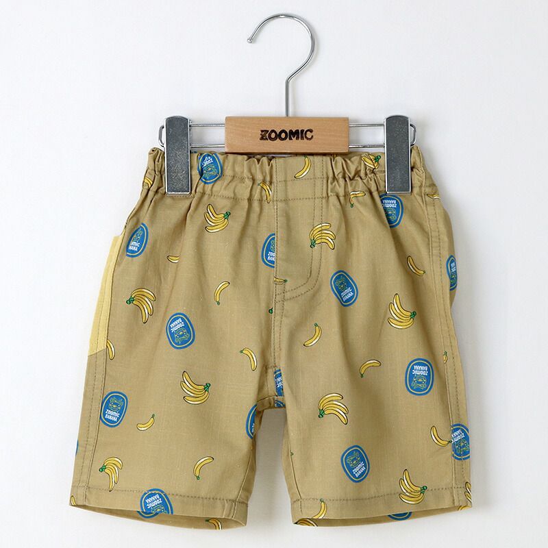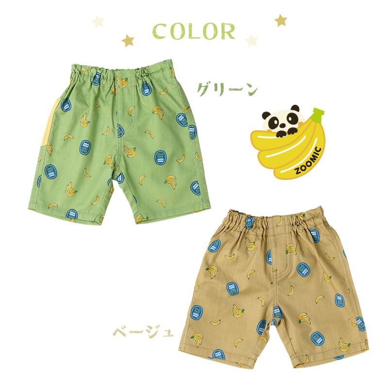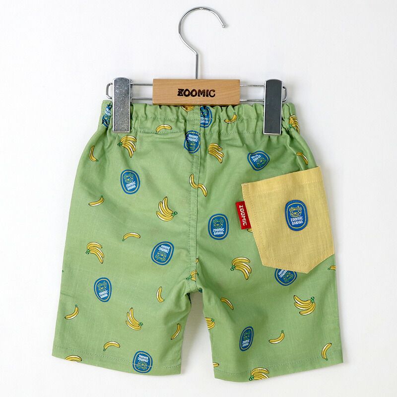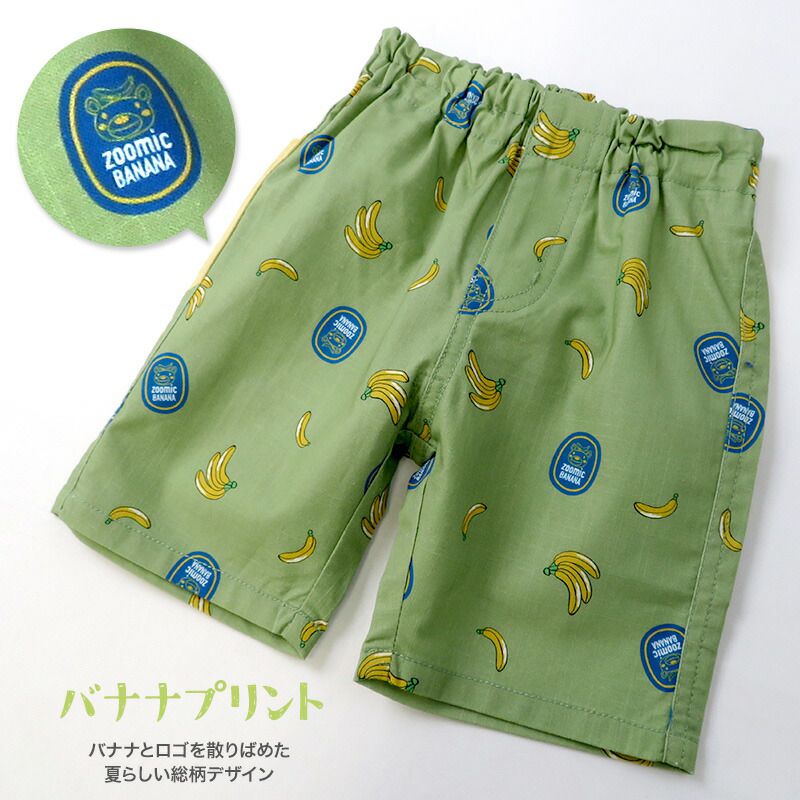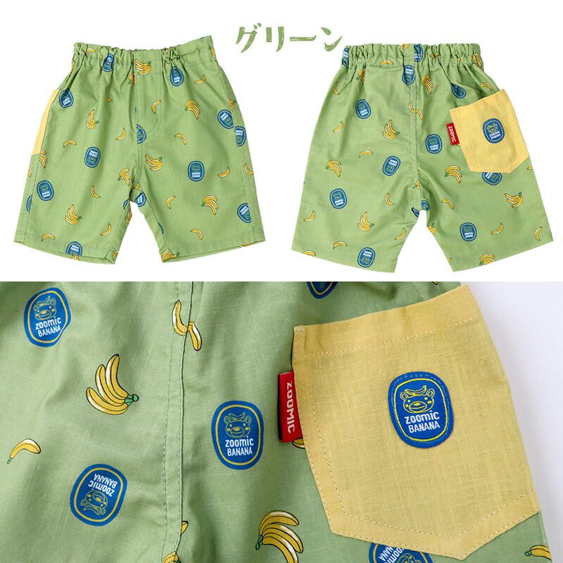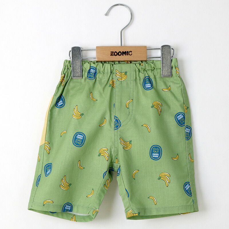 日本 ZOOLAND - 夏日薄款純棉印花大口袋短褲-滿版香蕉-綠