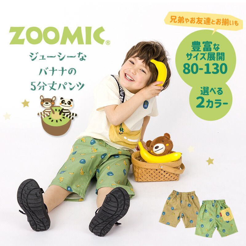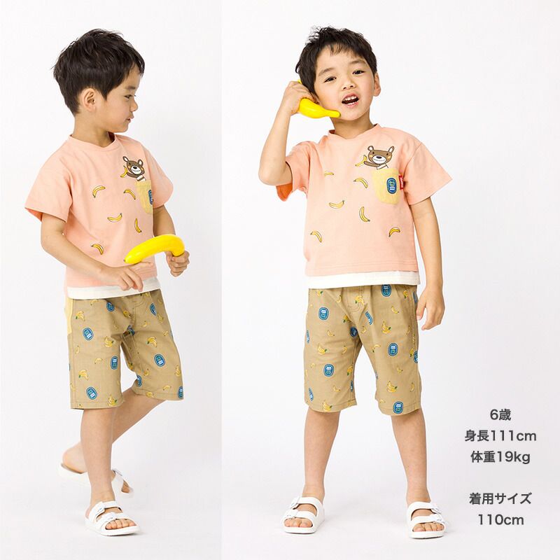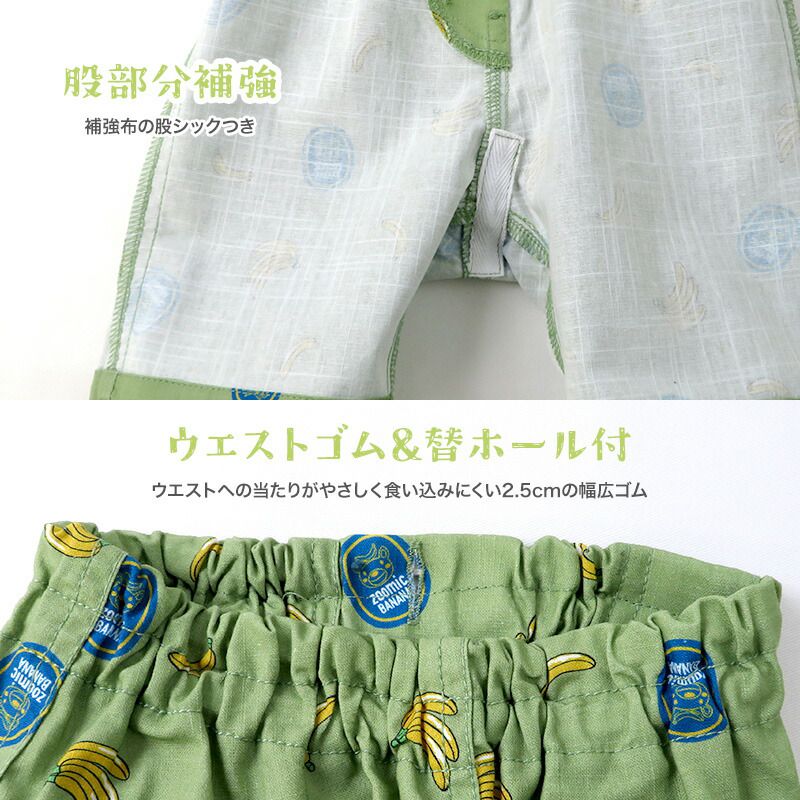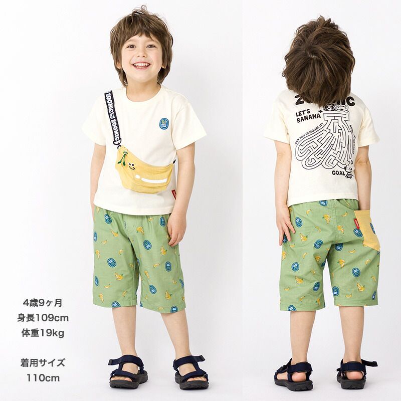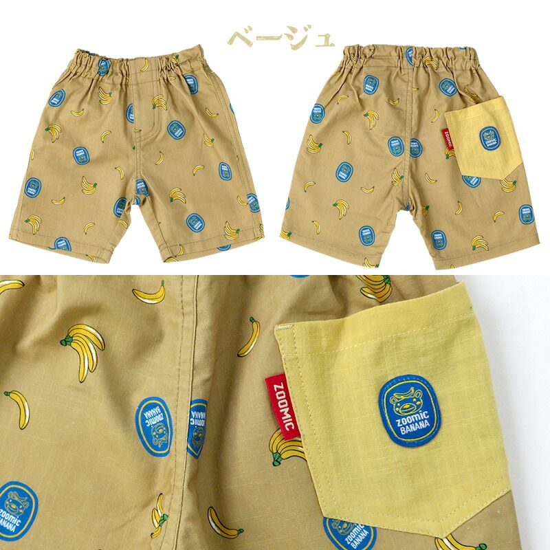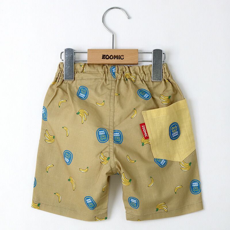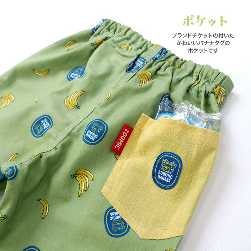 日本 ZOOLAND - 夏日薄款純棉印花大口袋短褲-滿版香蕉-綠