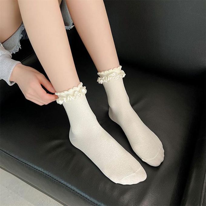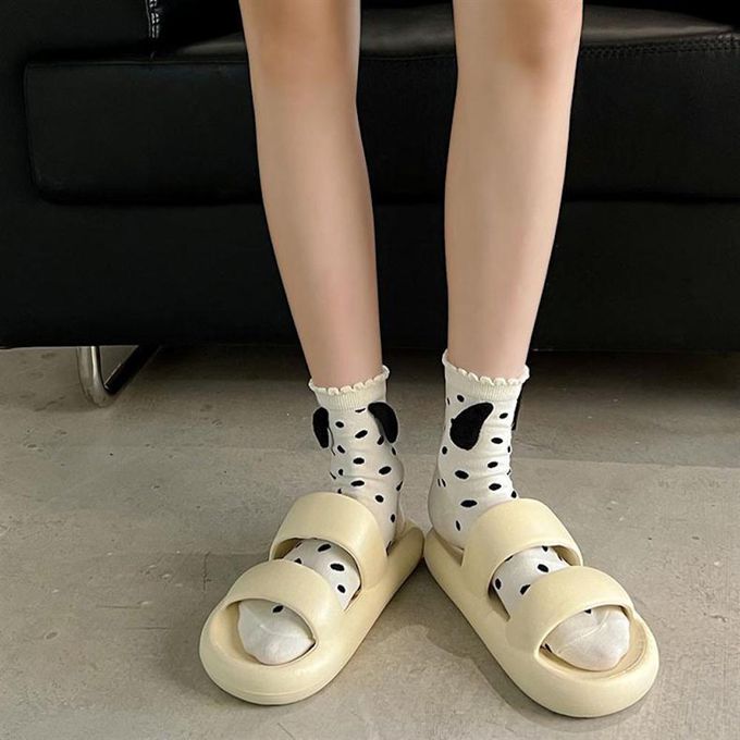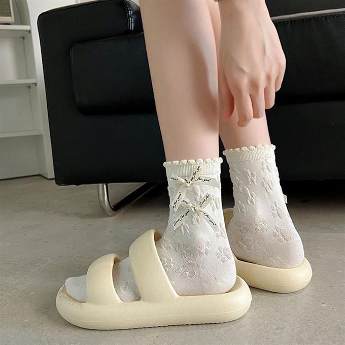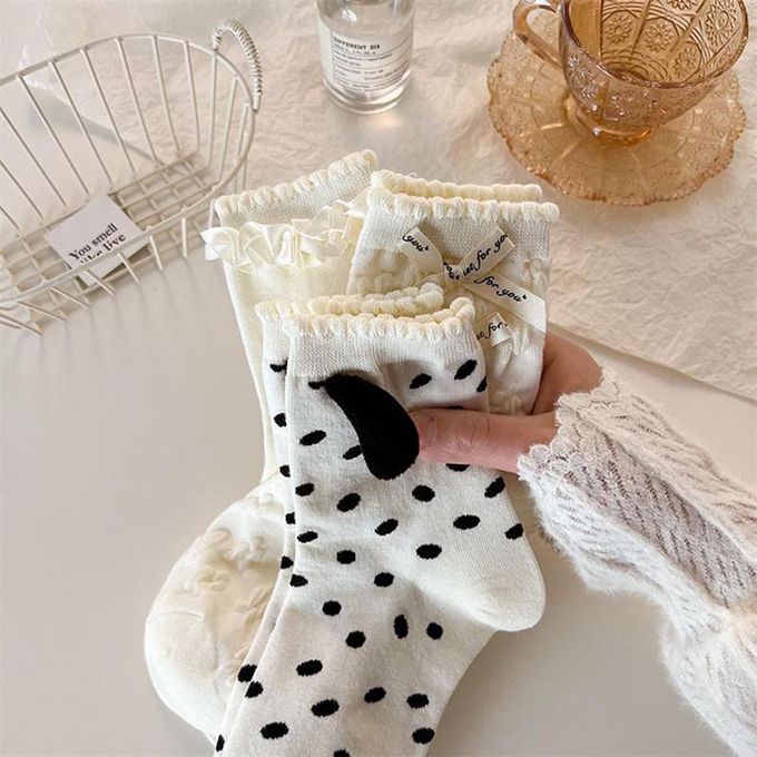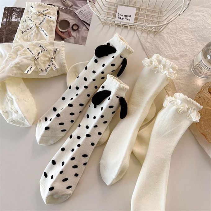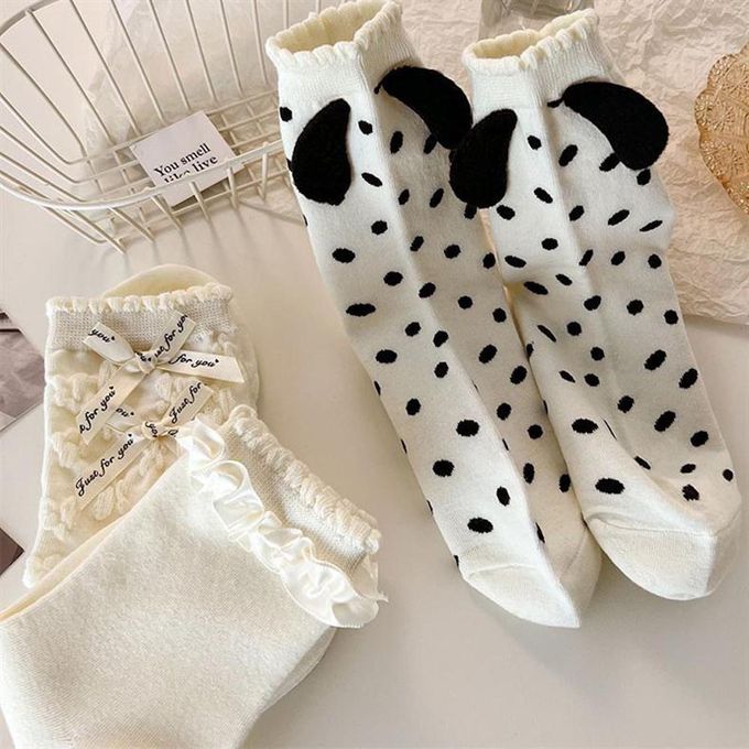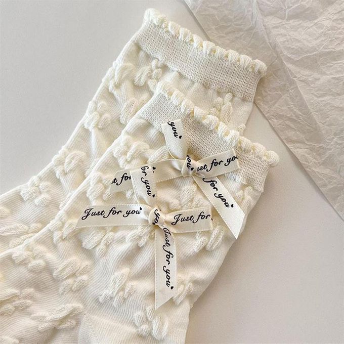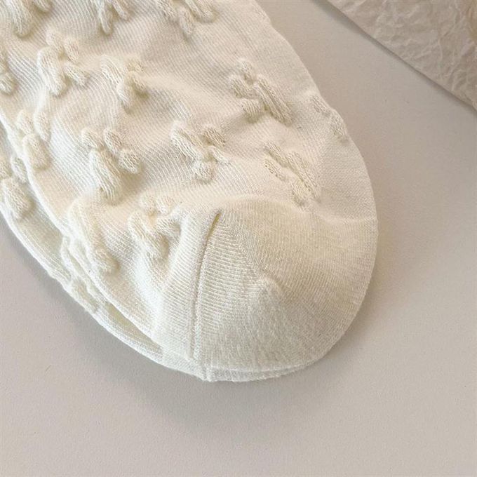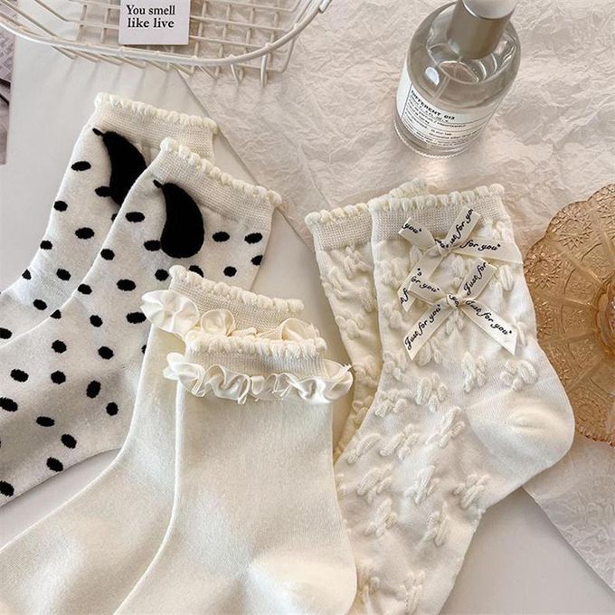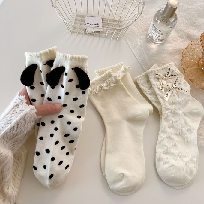 立體小狗耳朵白色甜美蝴蝶結花邊短筒襪 (均碼 (腳長22cm+))-3 雙一組