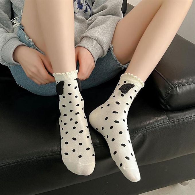 立體小狗耳朵白色甜美蝴蝶結花邊短筒襪