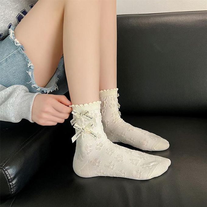 品名:立體小狗耳朵白色甜美蝴蝶結花邊短筒襪