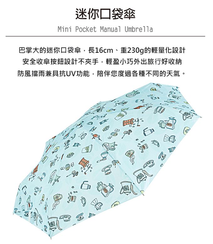 抗UV手開迷你口袋傘-午茶時光-230g