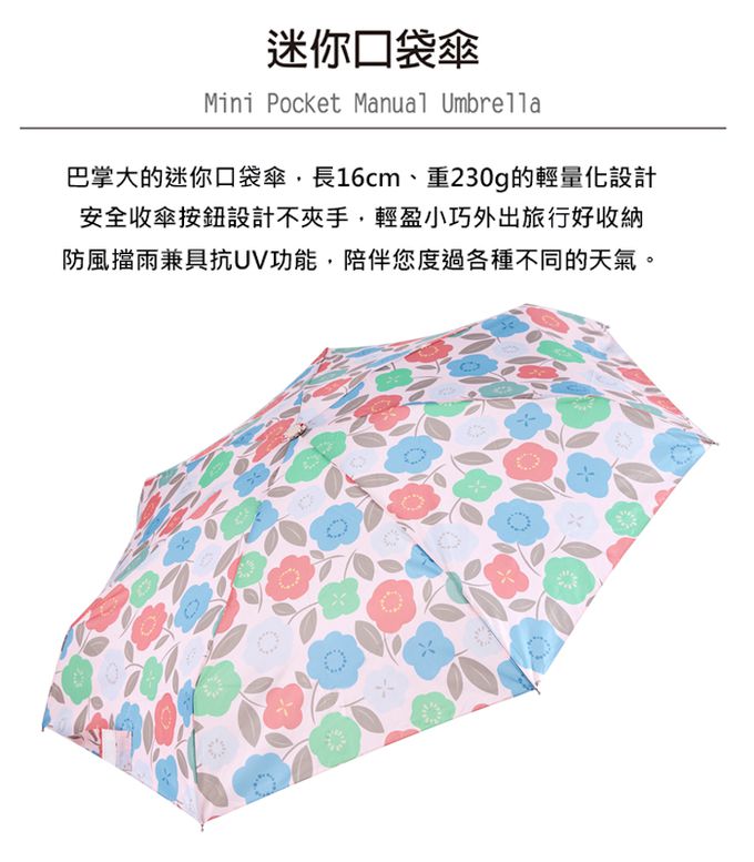 抗UV手開迷你口袋傘-粉漾花雨-230g