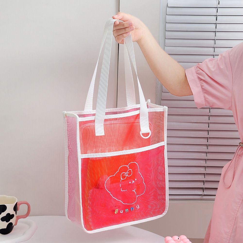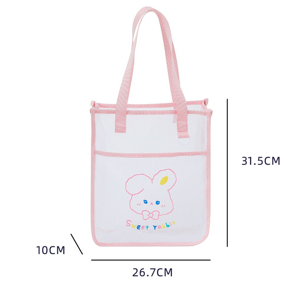 實用網紗單肩包/補習袋 可裝A4(不含吊飾)-可愛小兔-紅色 (26.7×31.5×10cm)