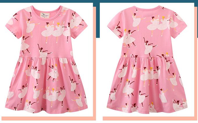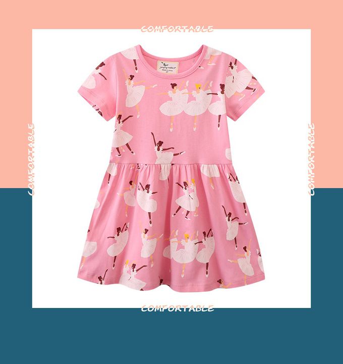 棉質圓領短袖洋裝-芭蕾舞者-粉色