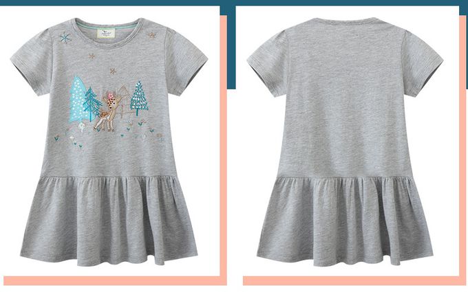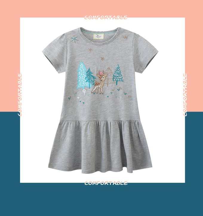 棉質圓領短袖洋裝-森林小鹿-灰色