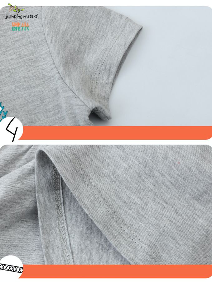Jumping meters - 棉質圓領短袖洋裝-恐龍與花-藏青點點