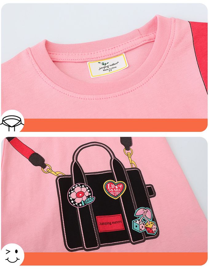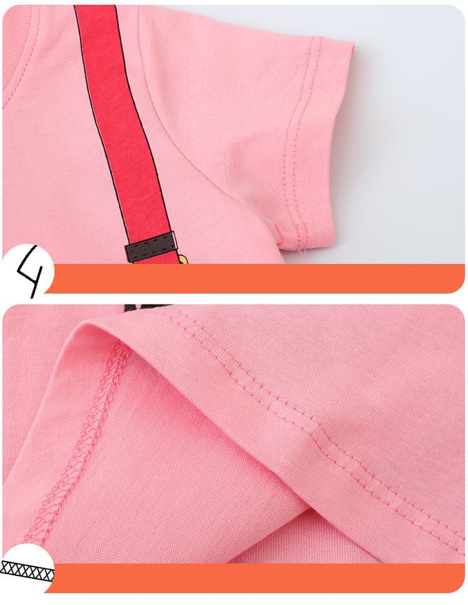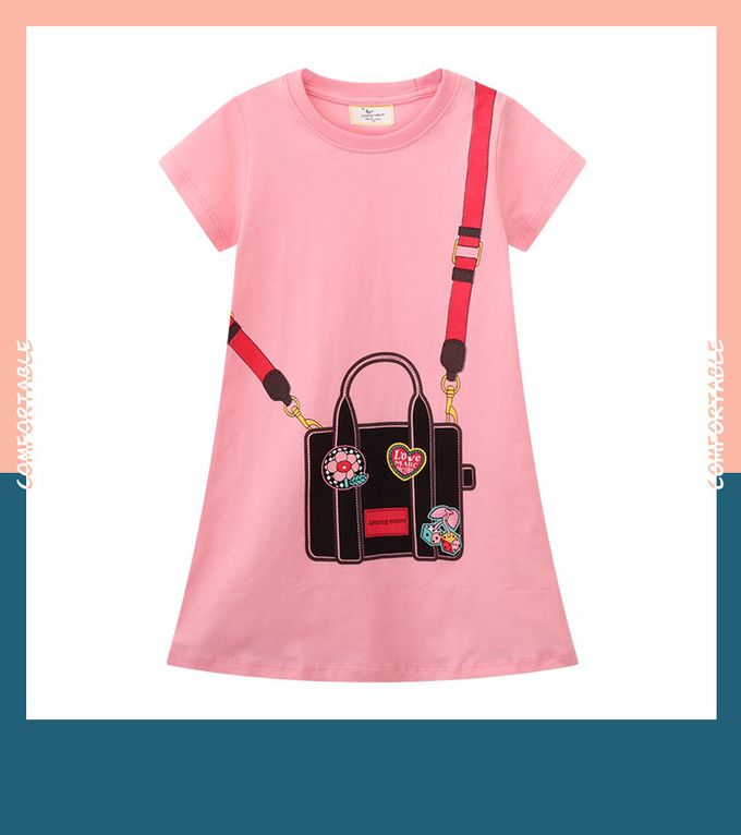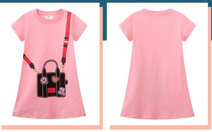 棉質圓領短袖洋裝-童趣背包-粉色