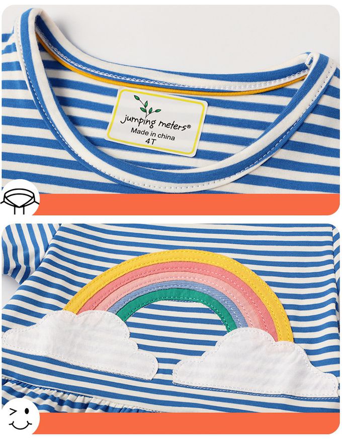 Jumping meters - 棉質圓領短袖洋裝-彩虹獨角獸-深藍色