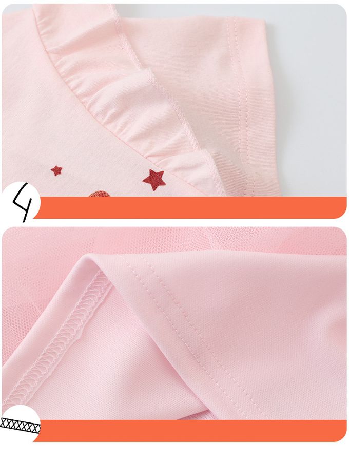 棉質圓領荷葉邊網紗洋裝-芭蕾舞者-粉色