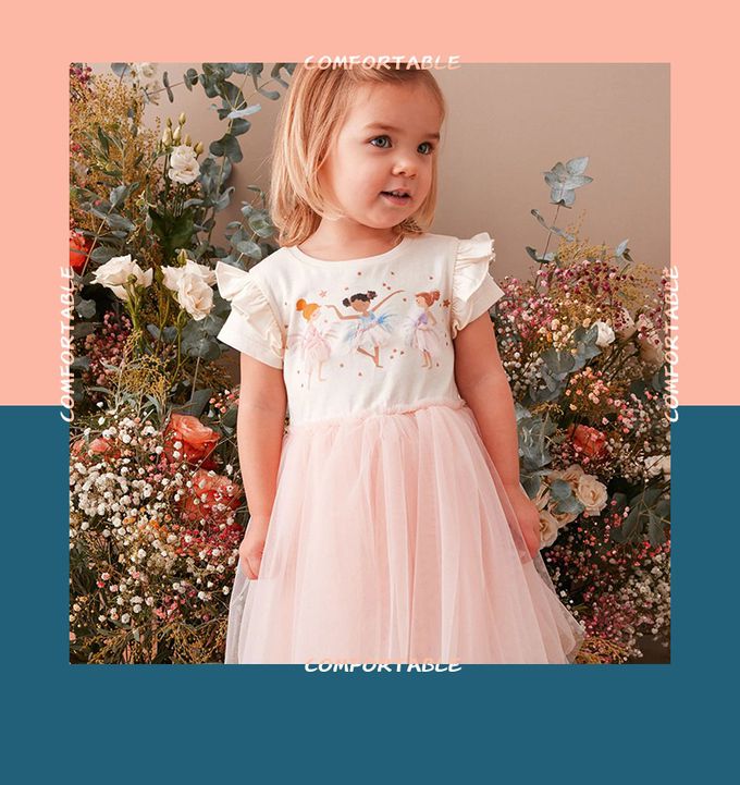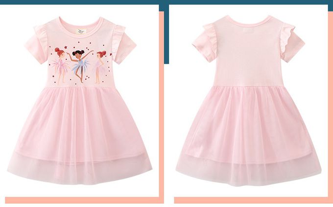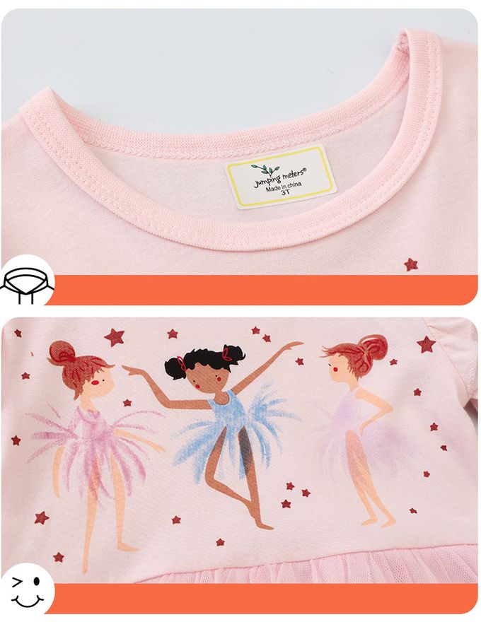 Jumping meters - 棉質圓領荷葉邊網紗洋裝-芭蕾舞者-粉色