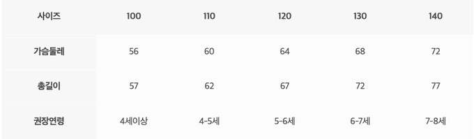 尺寸表由上而下為:尺寸、胸圍、總長、建議年齡