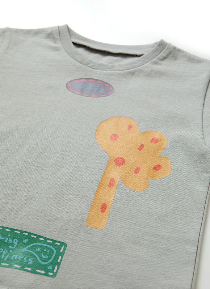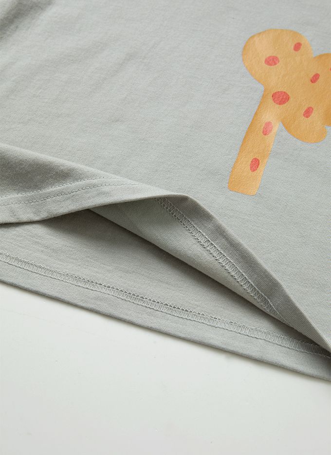 韓國 OZKIZ - 可愛印花短袖上衣-淺灰