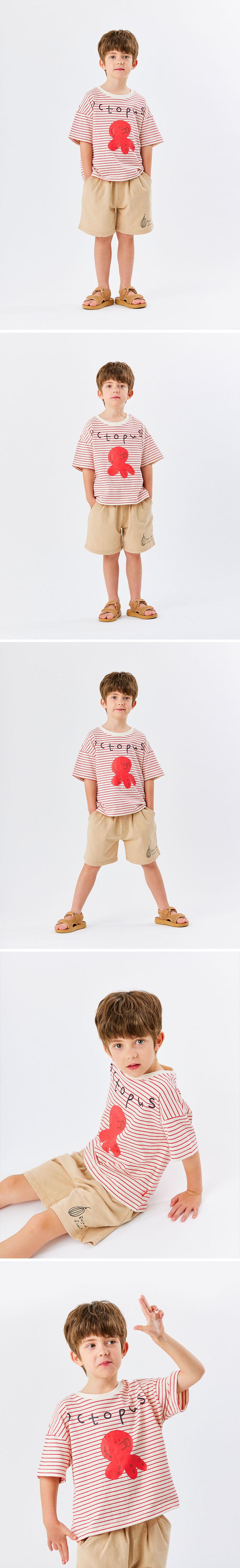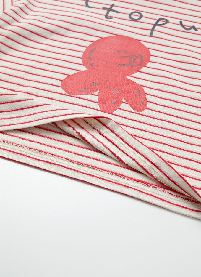 韓國 OZKIZ - 嘟嘴章魚條紋短袖上衣-紅