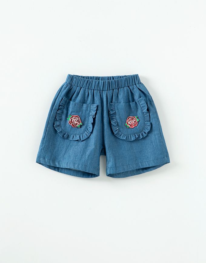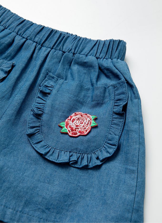 • 品名:鬆緊腰亮片玫瑰點綴短褲