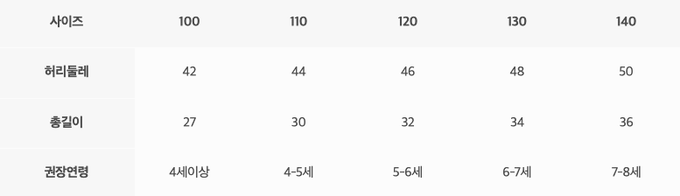 尺寸表由上而下為:尺寸、腰圍、總長、建議年齡