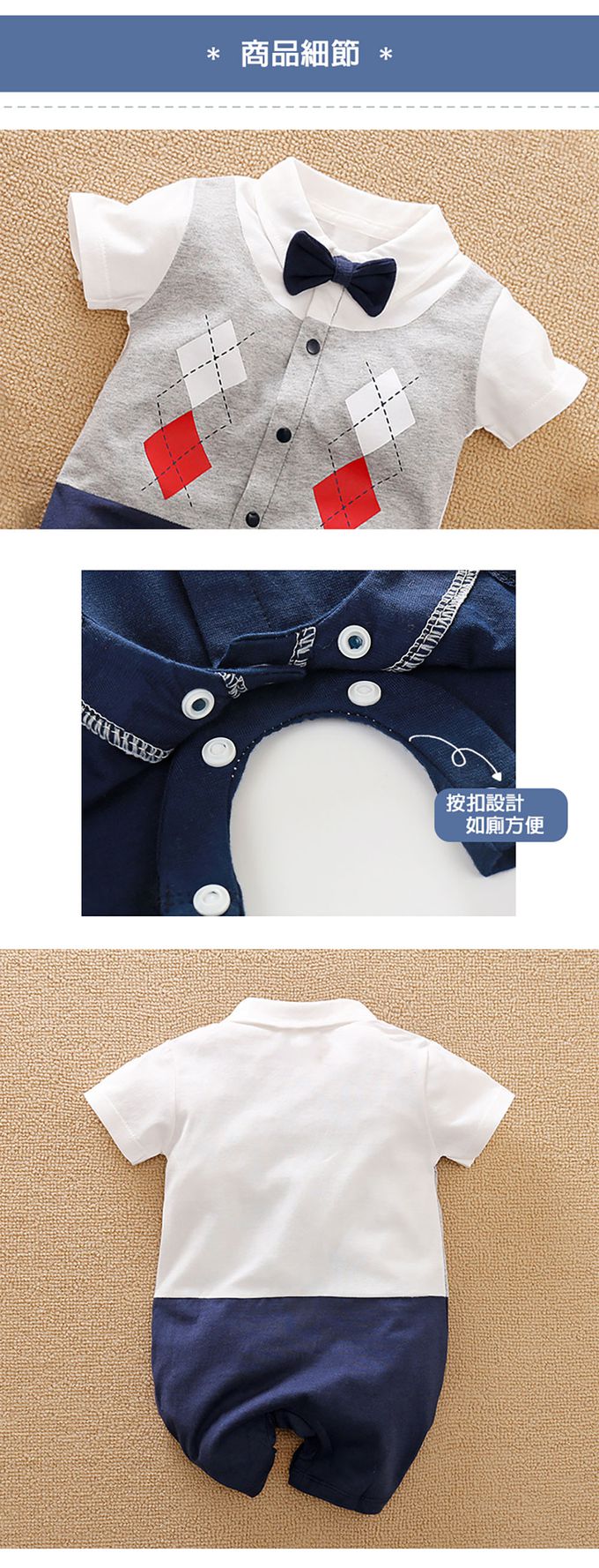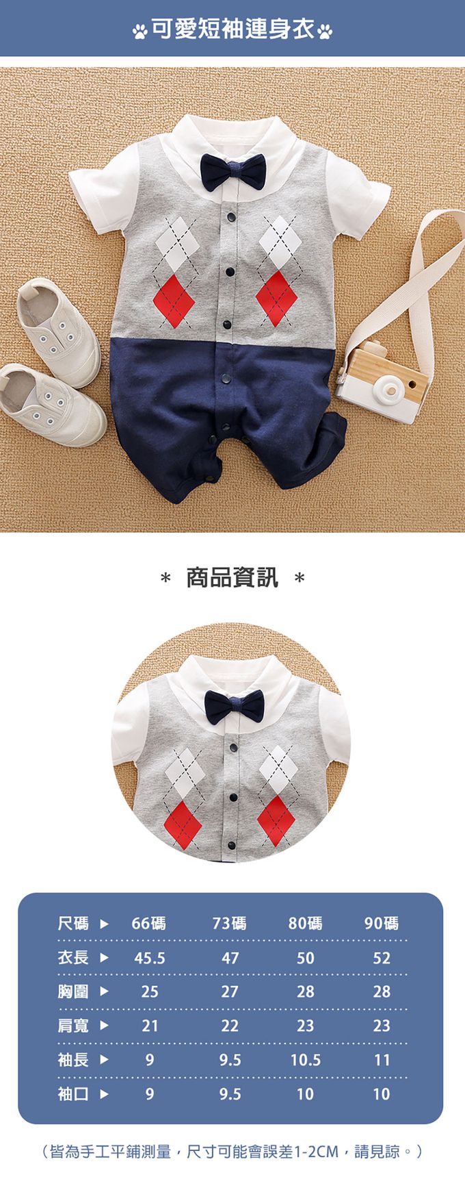 品名:短袖造型連身包屁衣 童裝 嬰兒連身衣 格子紳士